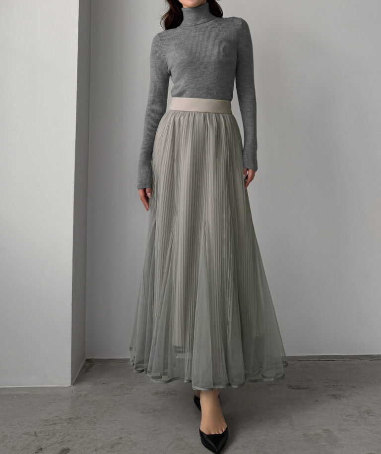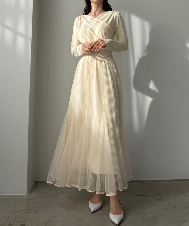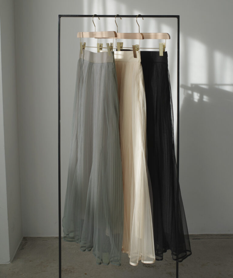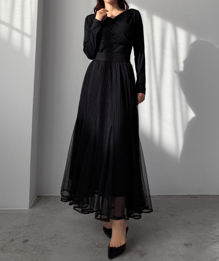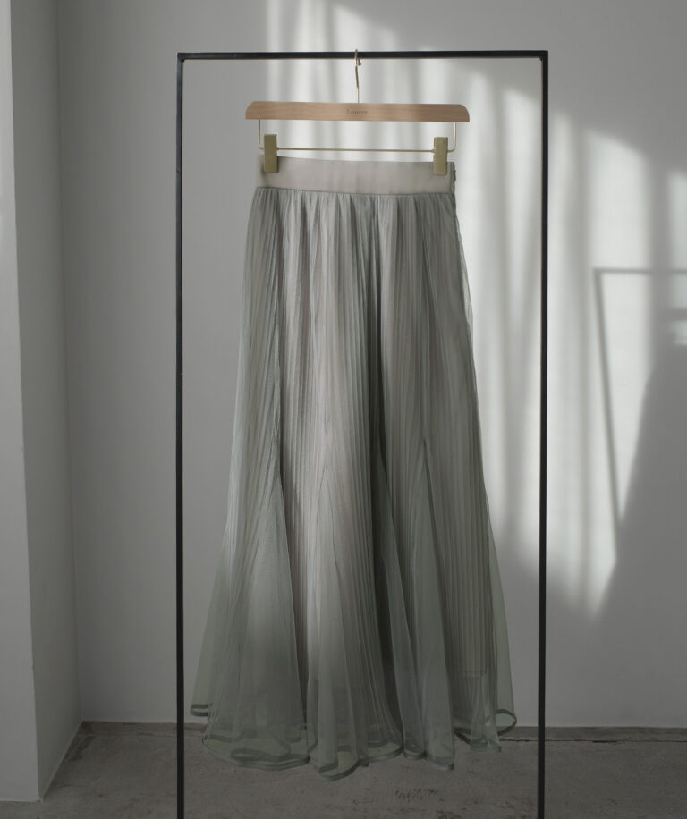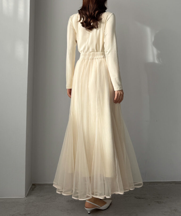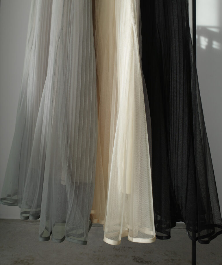 チュールにプリーツ加工を施したフレアシルエットで