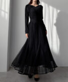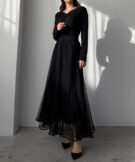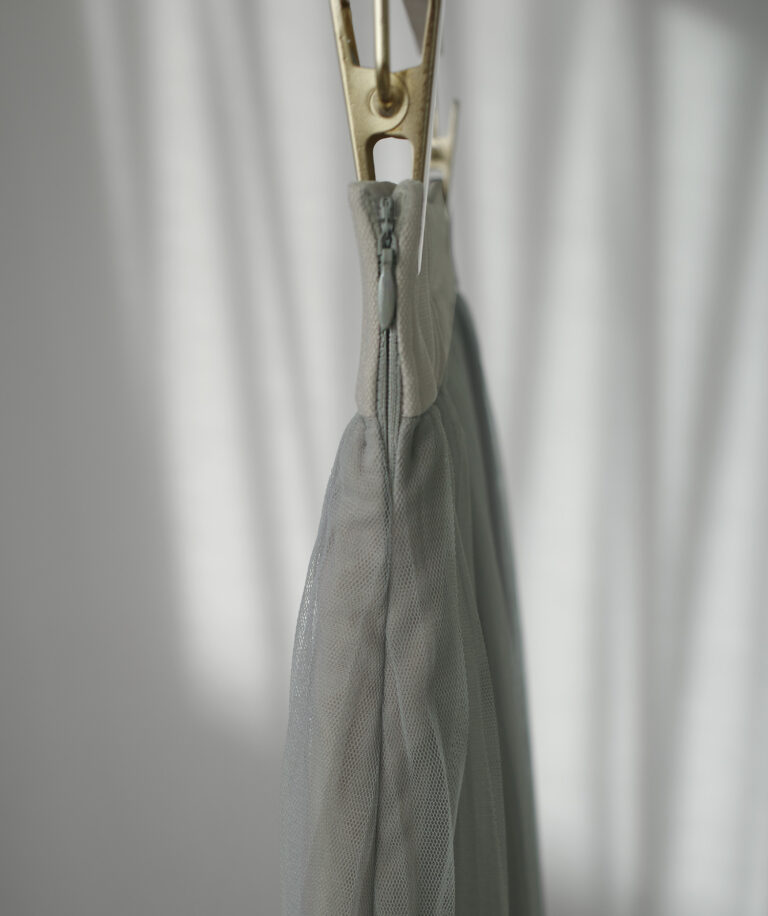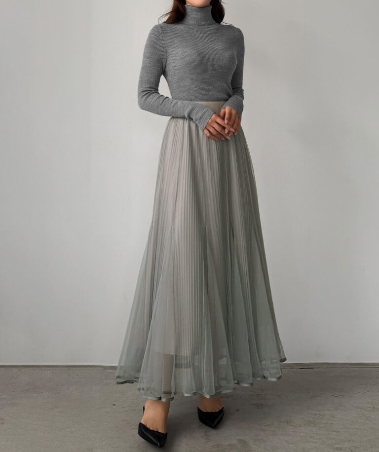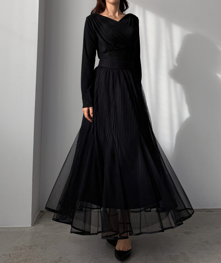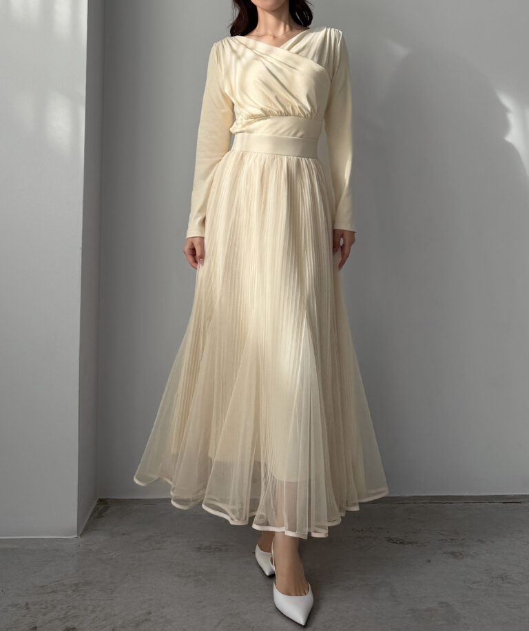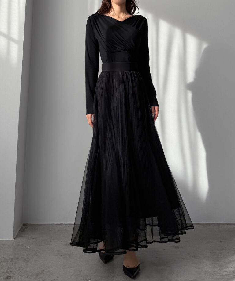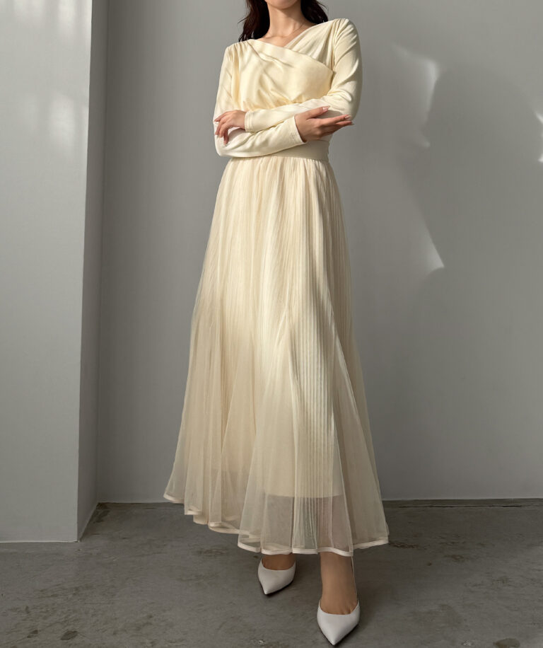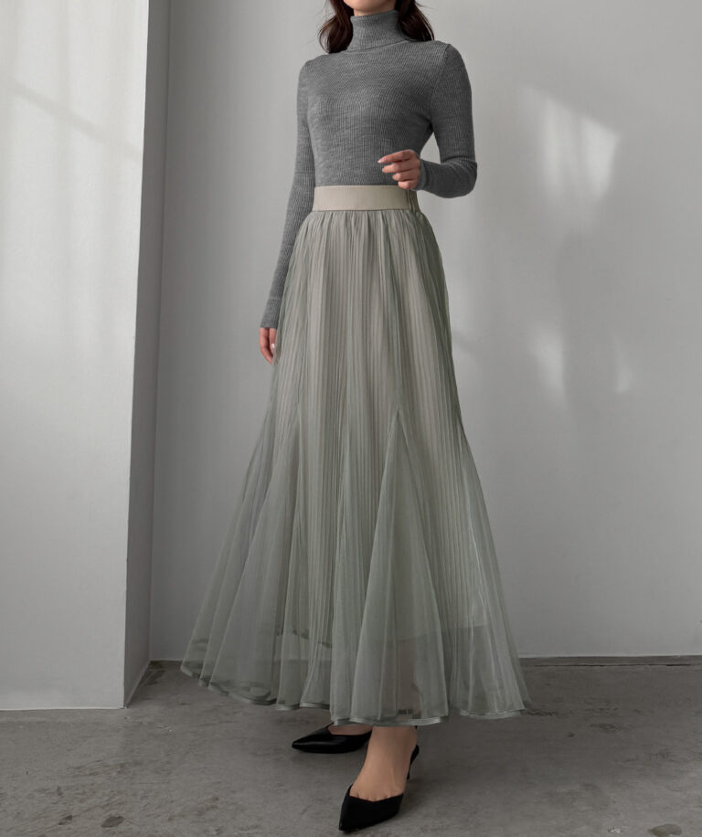 チュールにプリーツ加工を施したフレアシルエットで