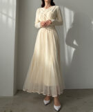 さらに、ほんのり透けるチュール素材で女性らしい抜け感を出しつつ、