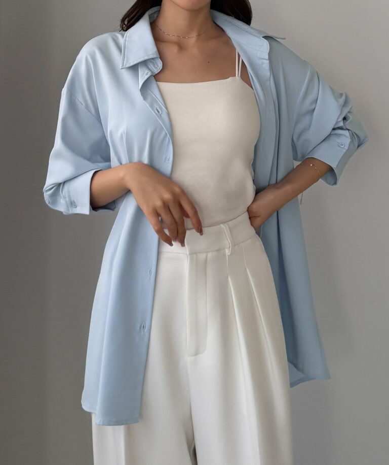 女性らしいヘルシーな肌見せを叶えてくれるフェミニンシャツ。