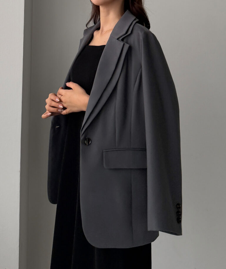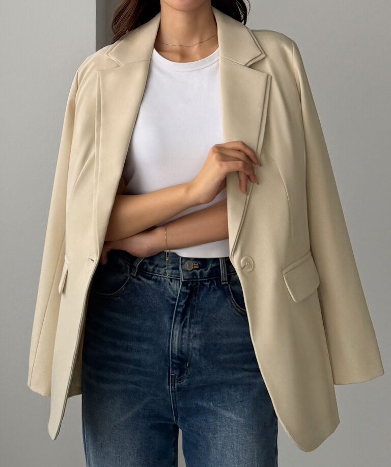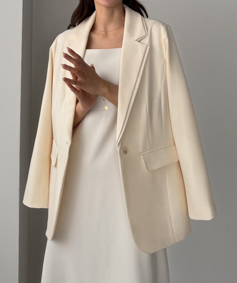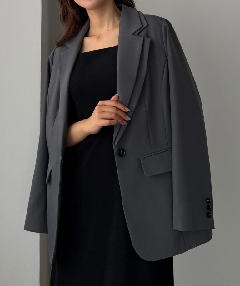 シングル釦で着こなしやすく、ビジネスからカジュアルまで幅広いシーンで着用いただけます。