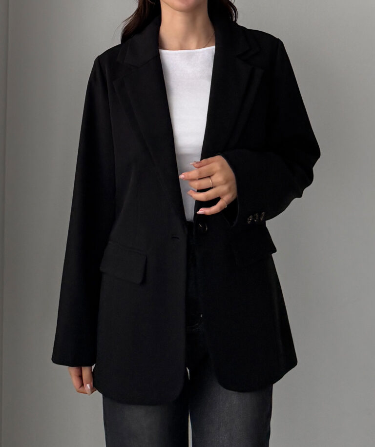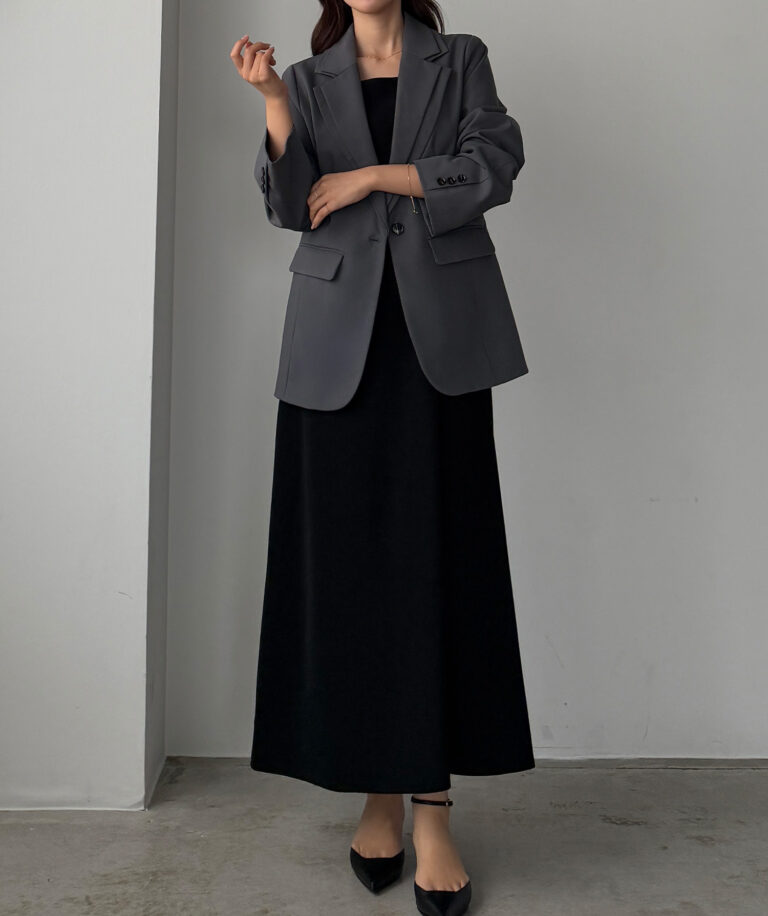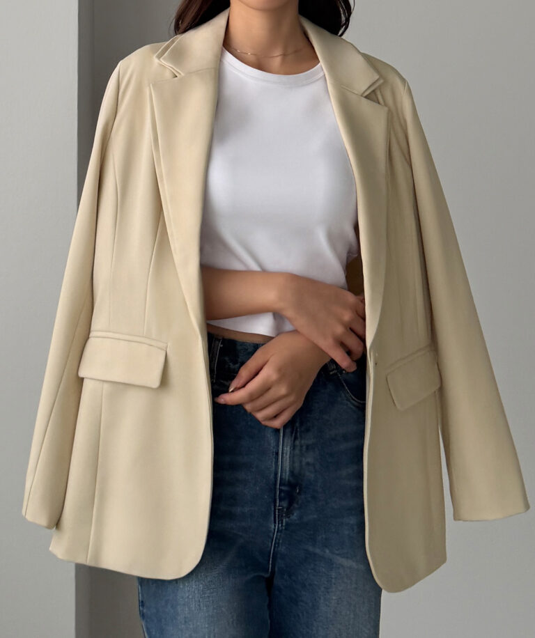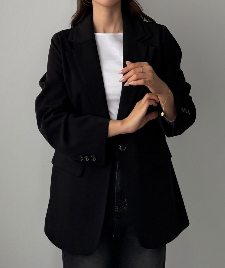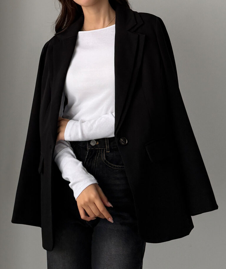 シングル釦で着こなしやすく、ビジネスからカジュアルまで幅広いシーンで着用いただけます。
