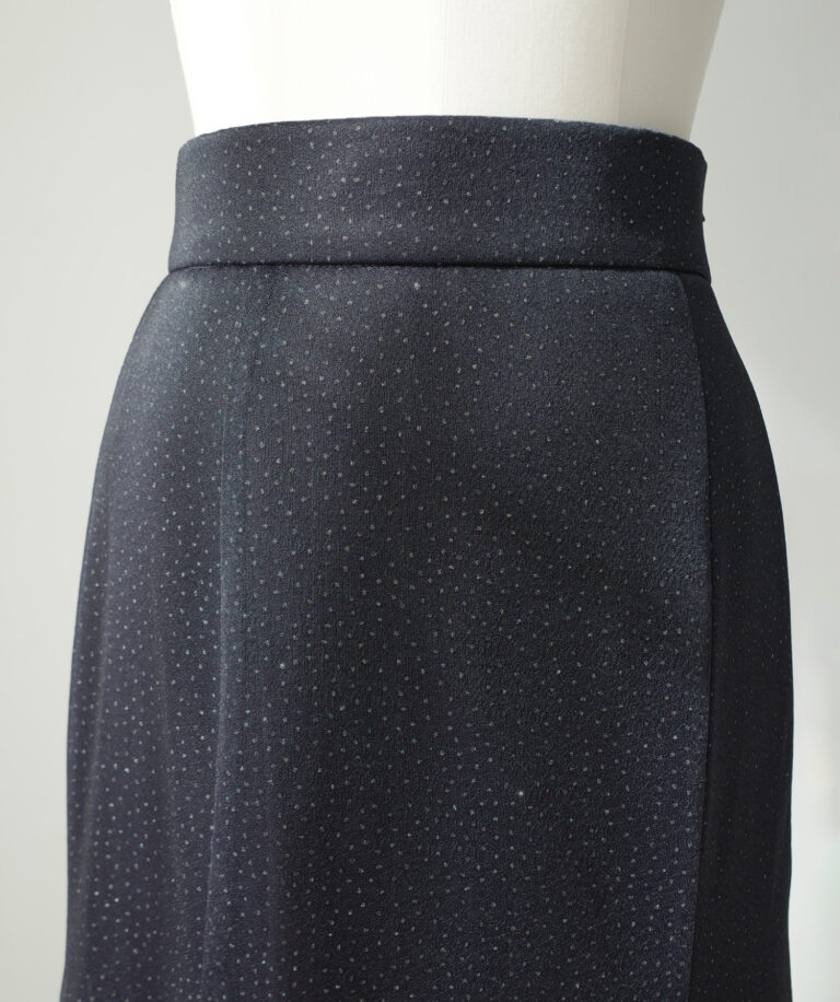 裾はフレアたっぷりに仕上げ、パイピング始末ですっきりとした見た目に。