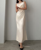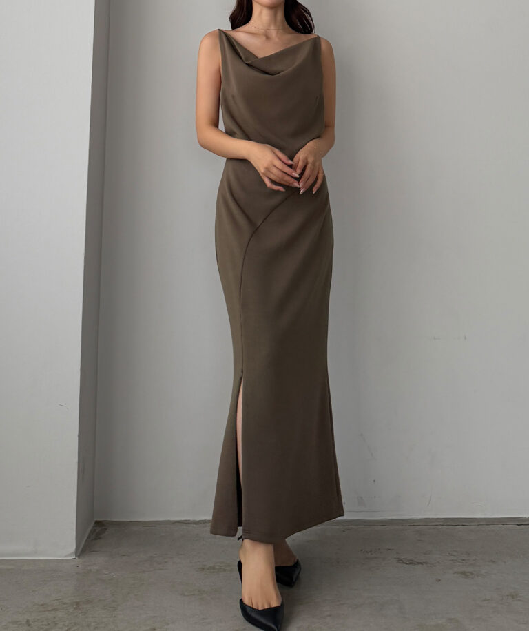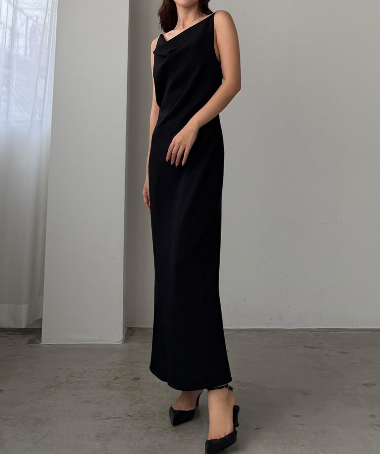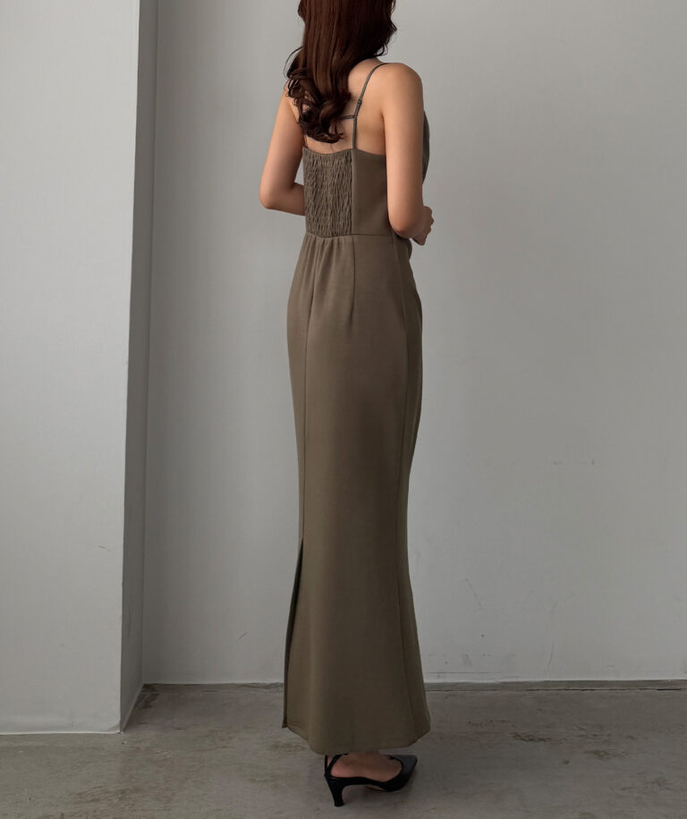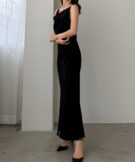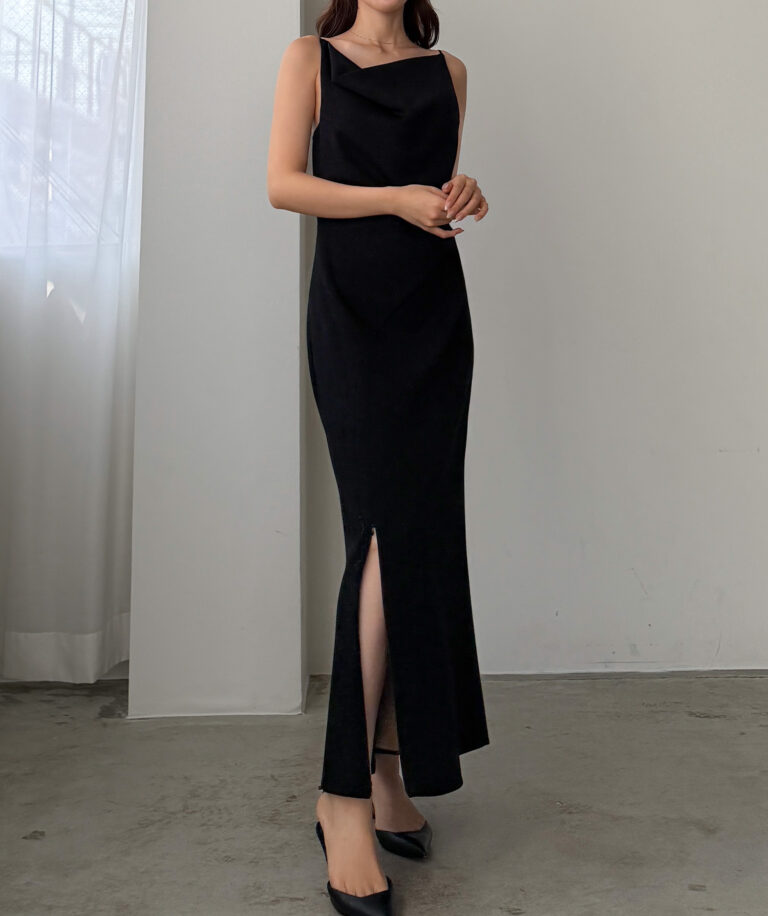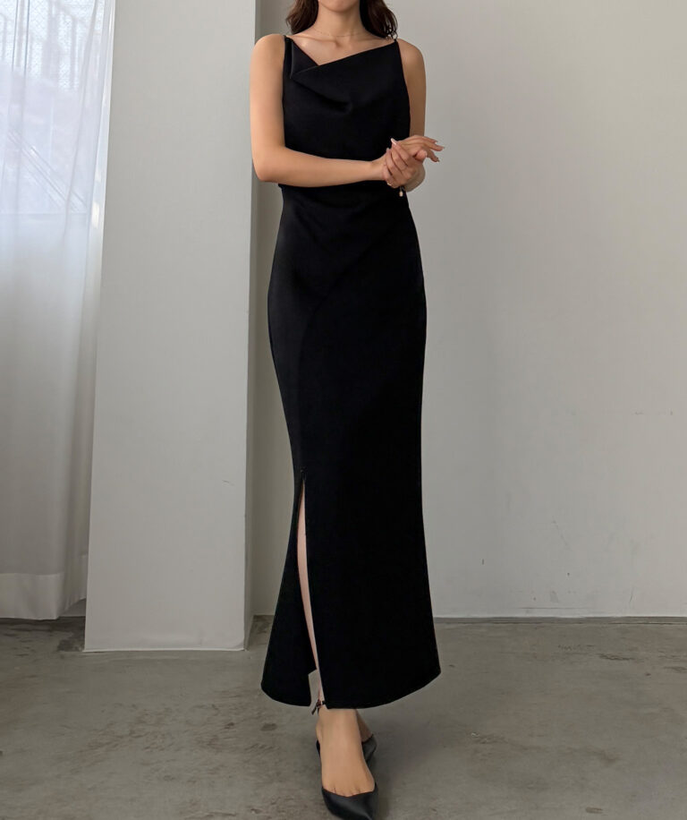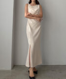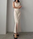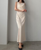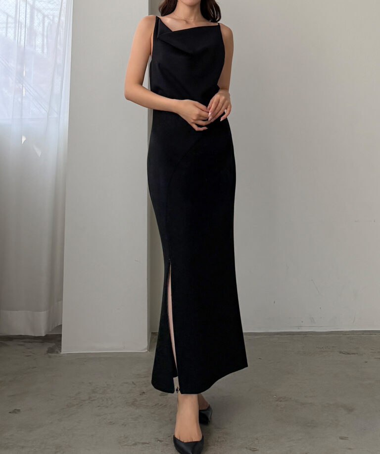 【626】 ドレープ前ファスナースリットキャミワンピース【一部ぺチスカートセット】