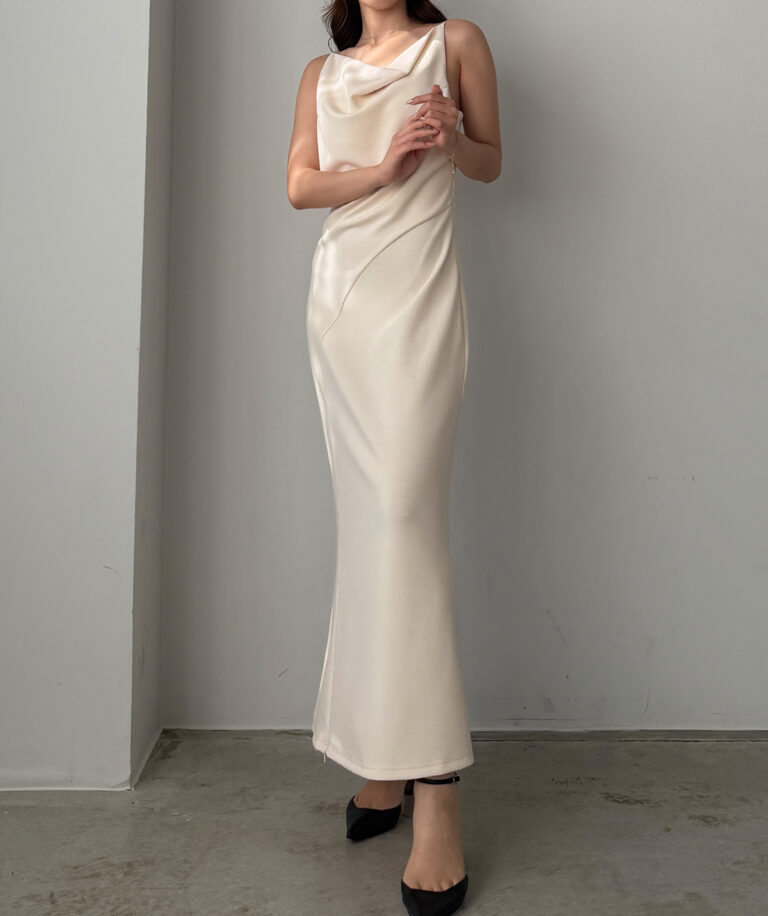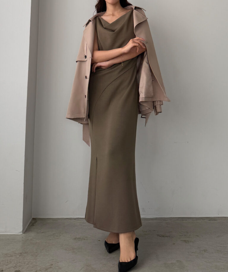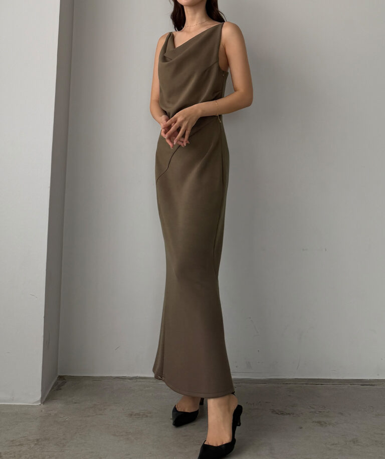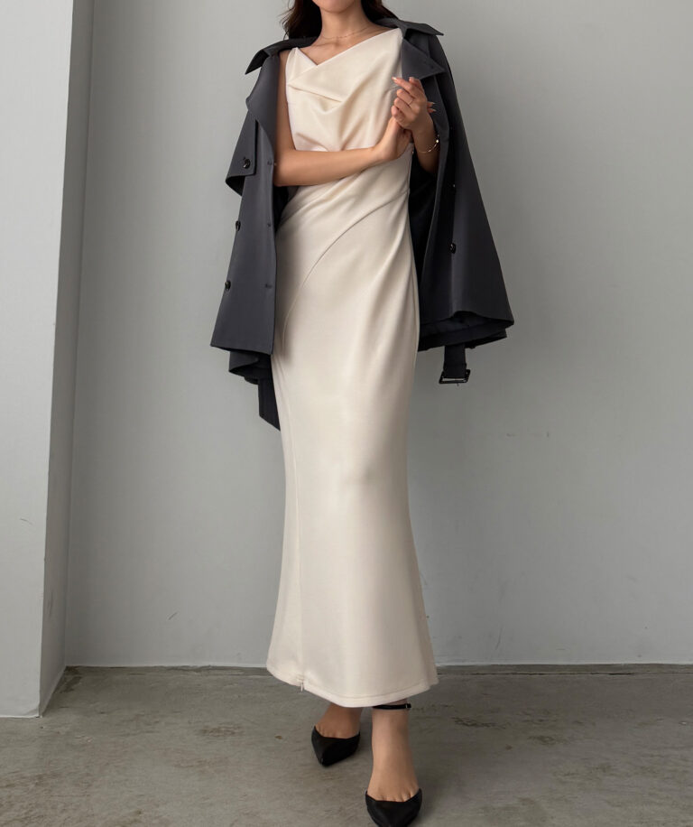 大人レディな雰囲気溢れるドレープワンピ。