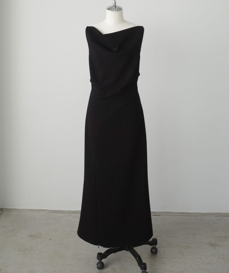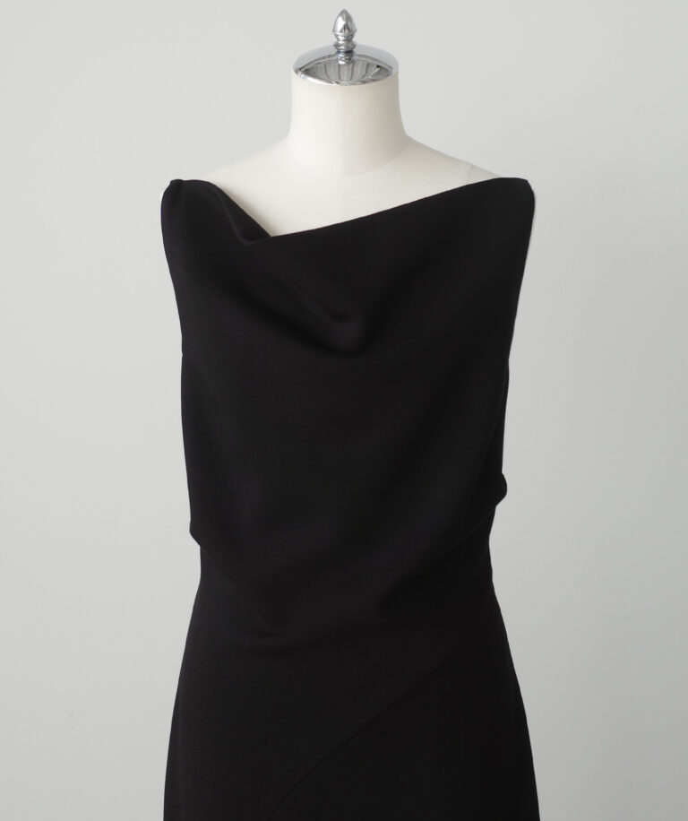 立体感のある美しいドレープデザインが女性らしさ高まる上品ワンピ。