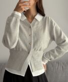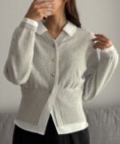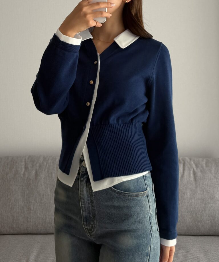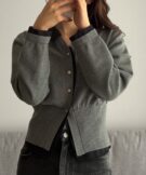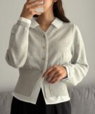 さらに、フロントに並べた金ボタンと襟付きデザインが