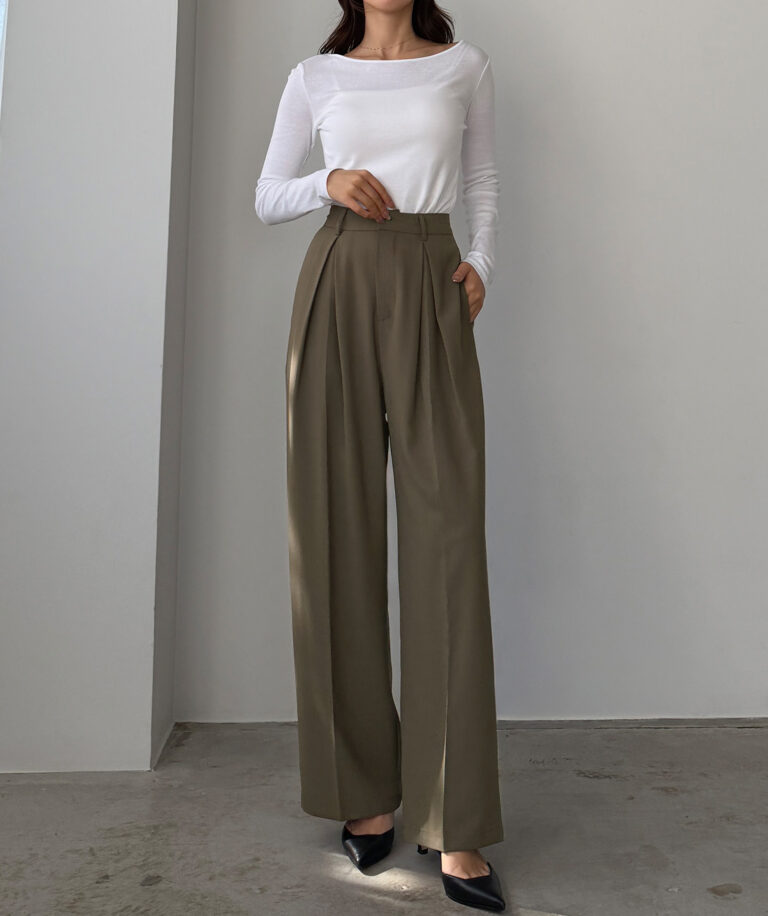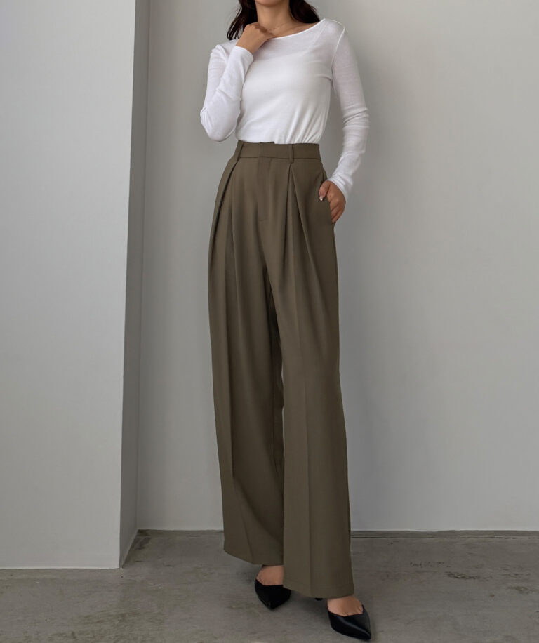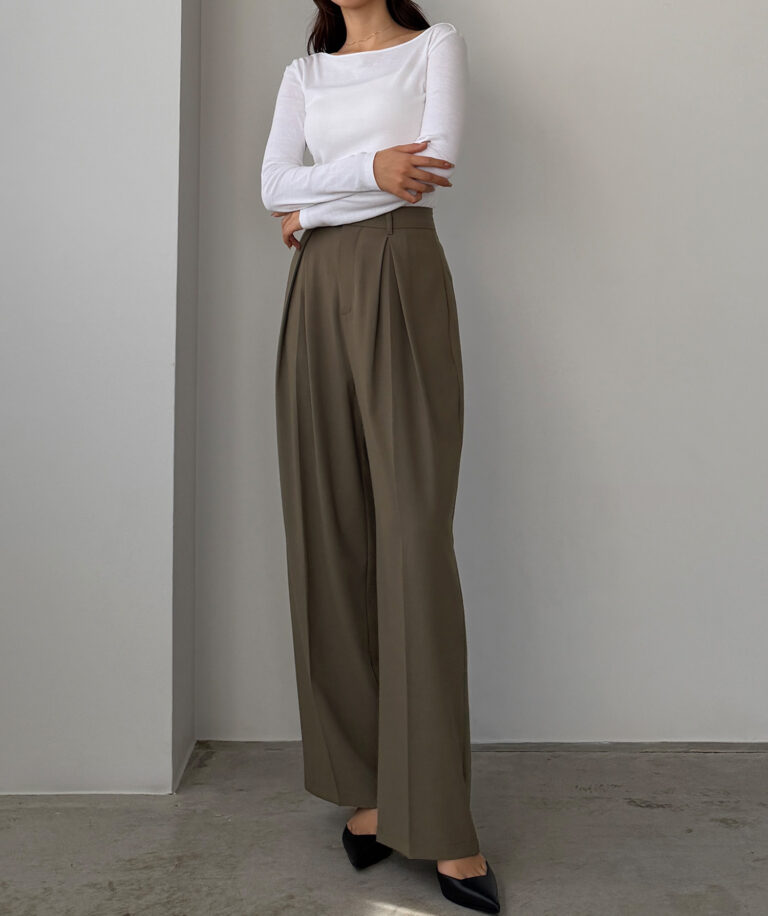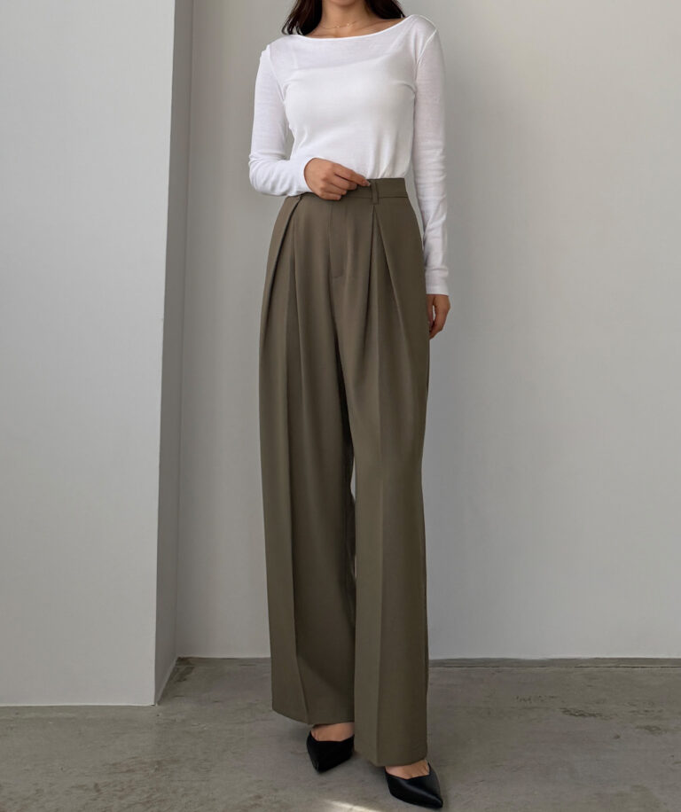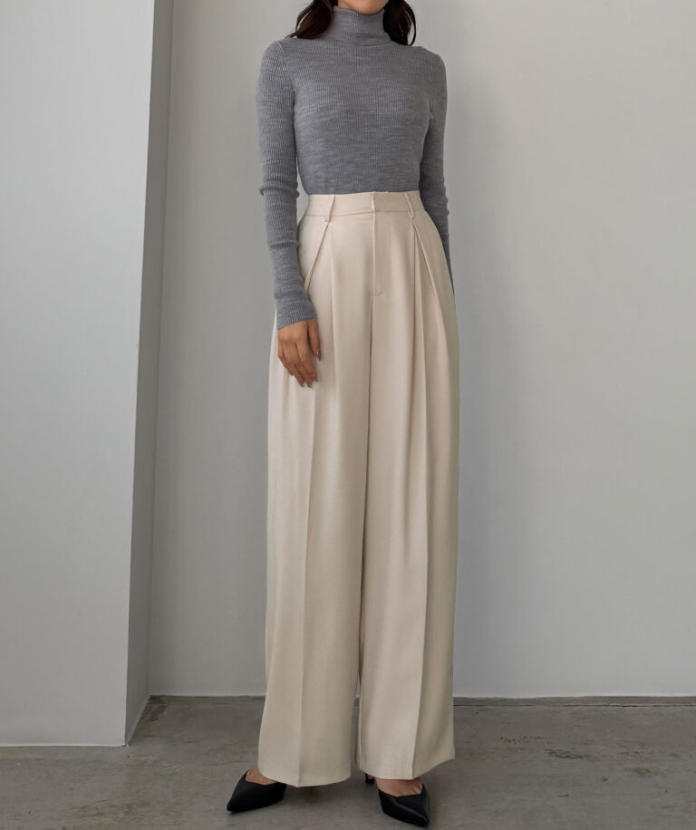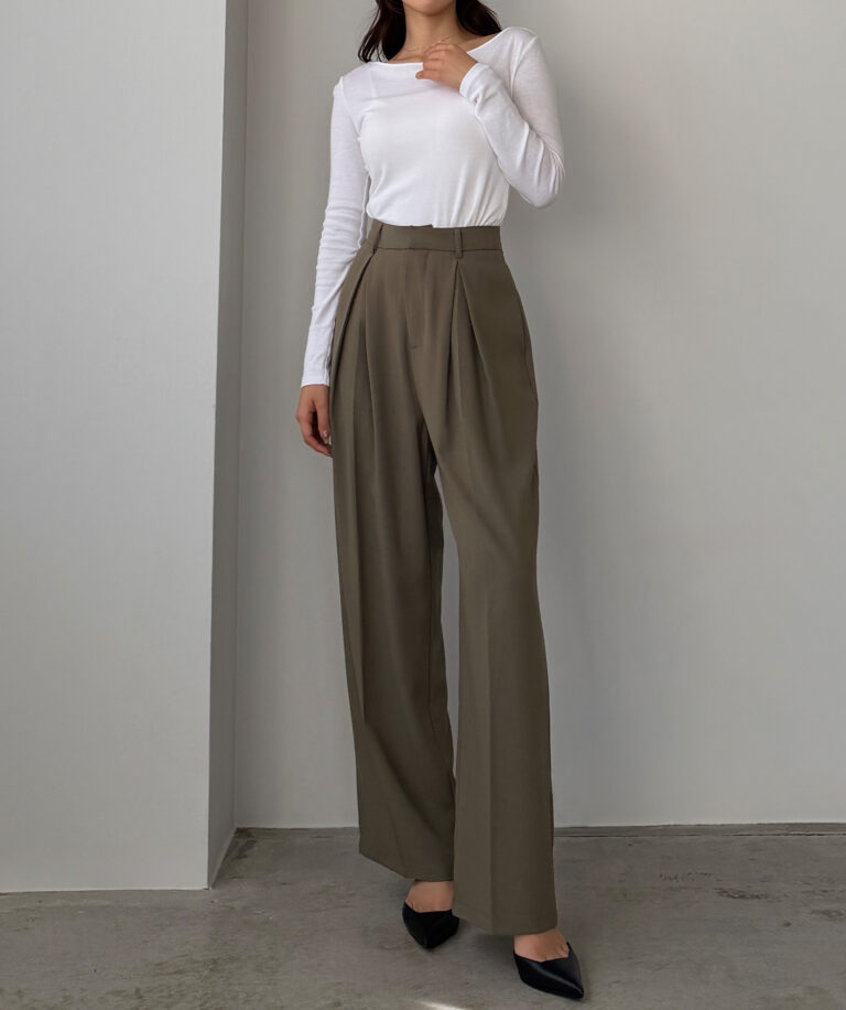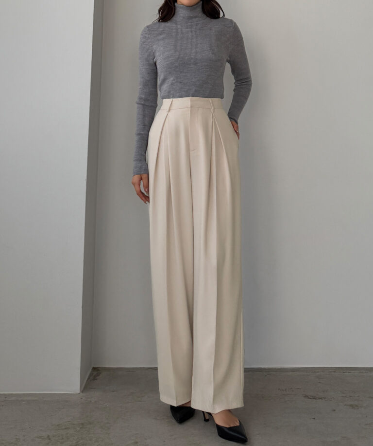 すとんと落ちるワイドシルエットで脚長効果抜群のきれいめパンツ。
