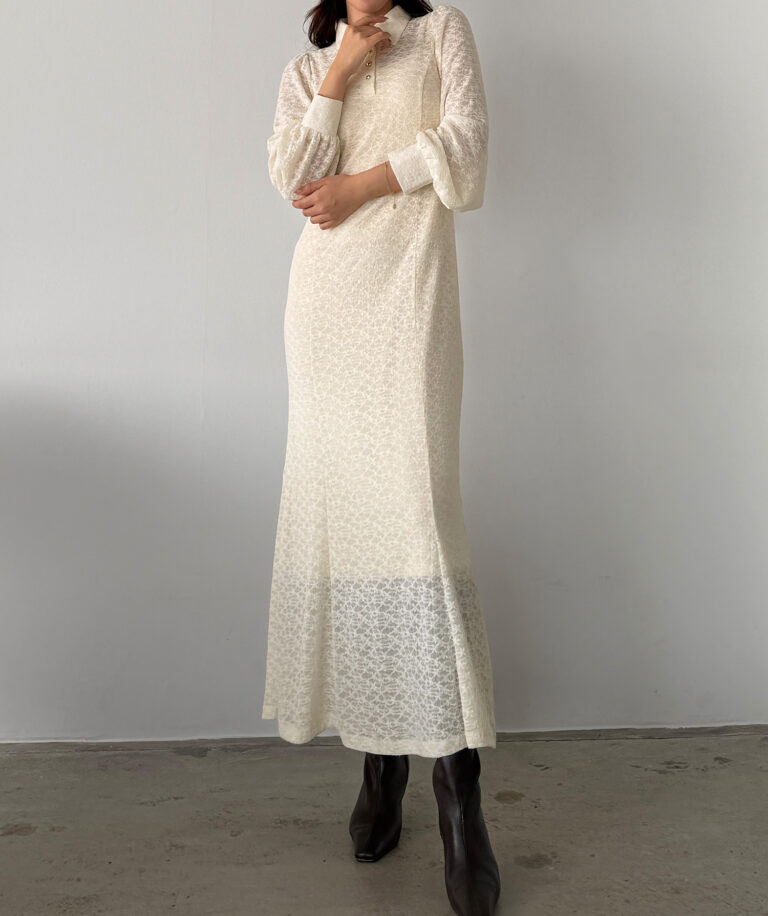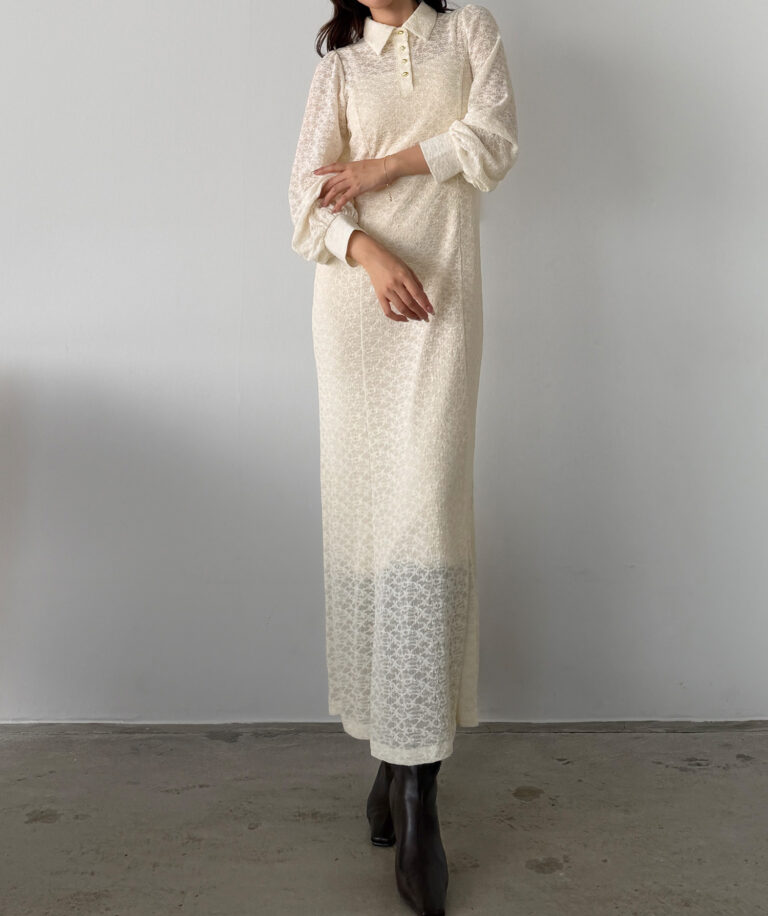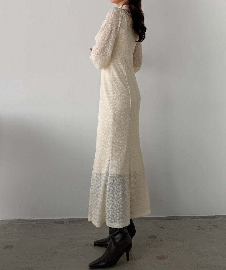 上品な透け感のレース生地が大人レディな印象にしてくれる一枚。