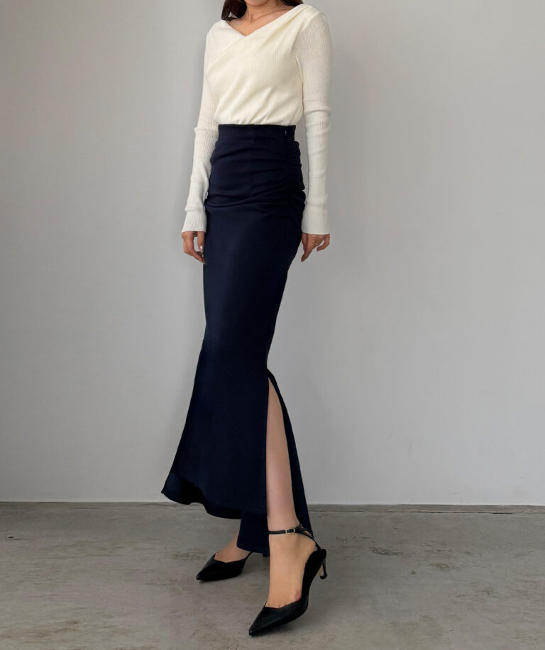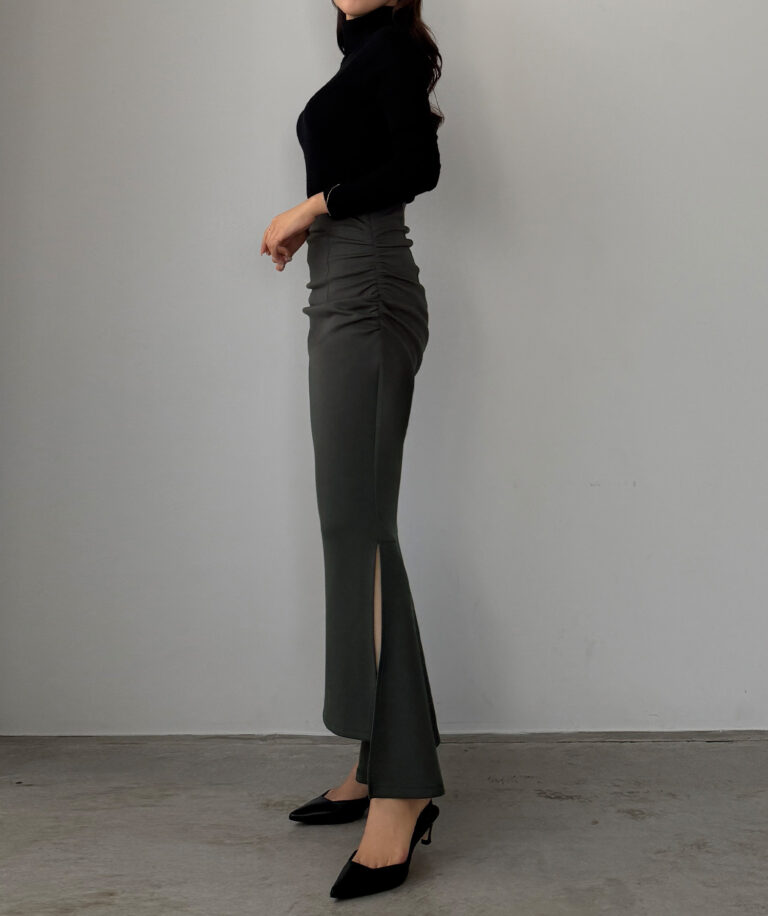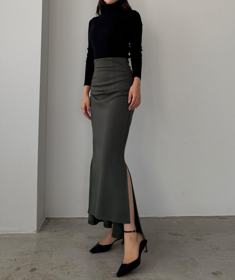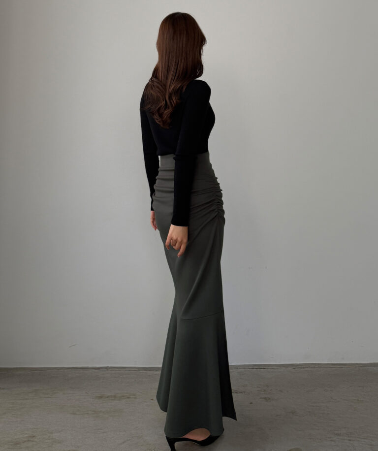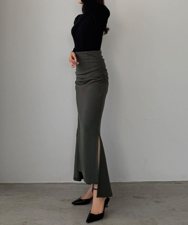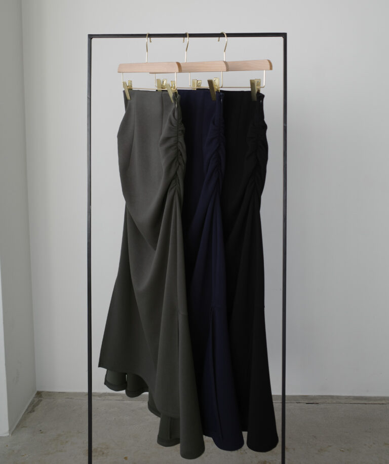 【642】サイドギャザーマーメイドポンチスカート(裏無し)