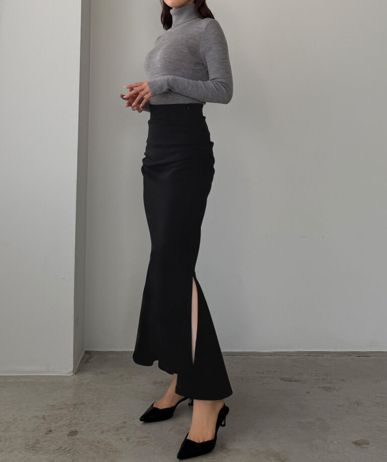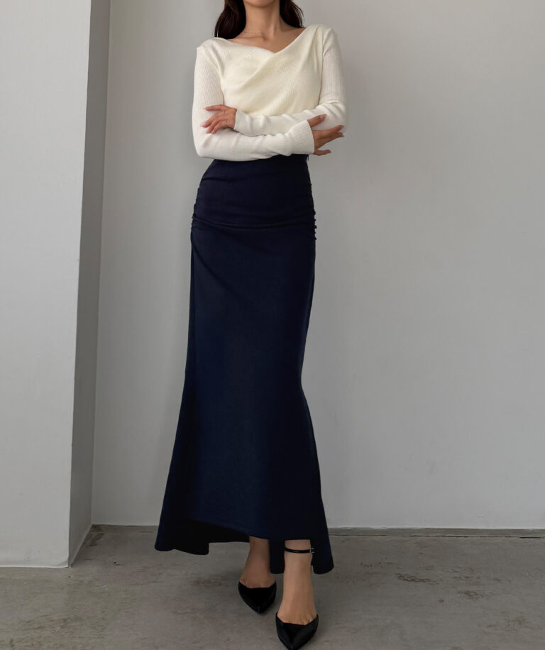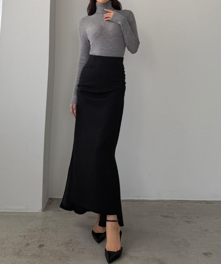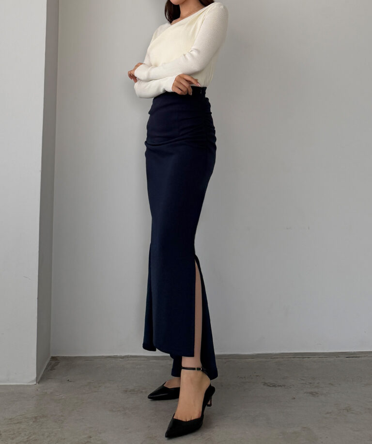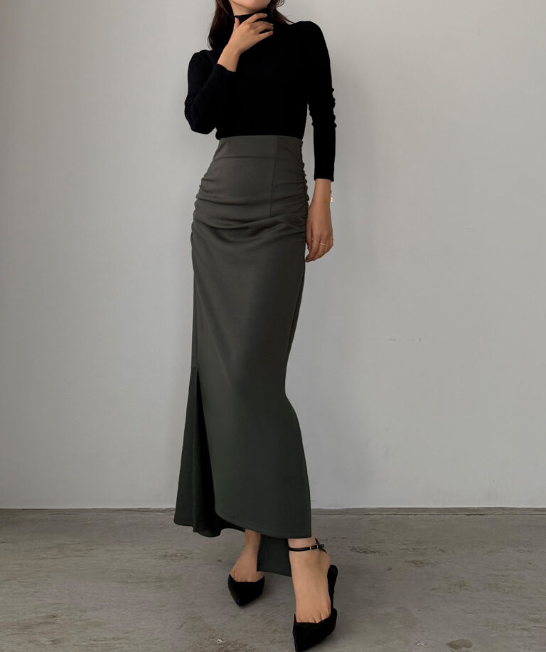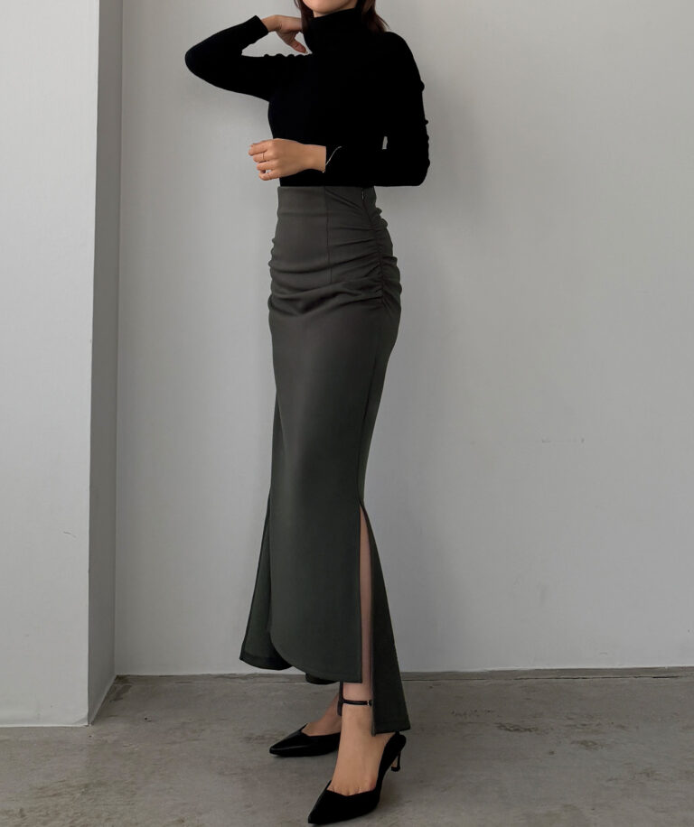 【642】サイドギャザーマーメイドポンチスカート(裏無し)