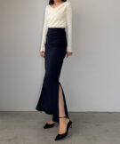 前はストレートシルエット、後ろはマーメイドシルエットで