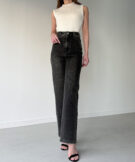 ボタンはLouereロゴ入りで、ハイウエスト&タイトめなサイズ感で