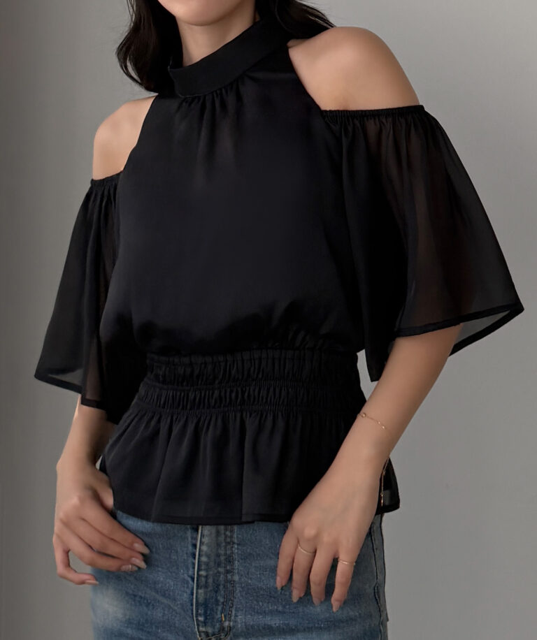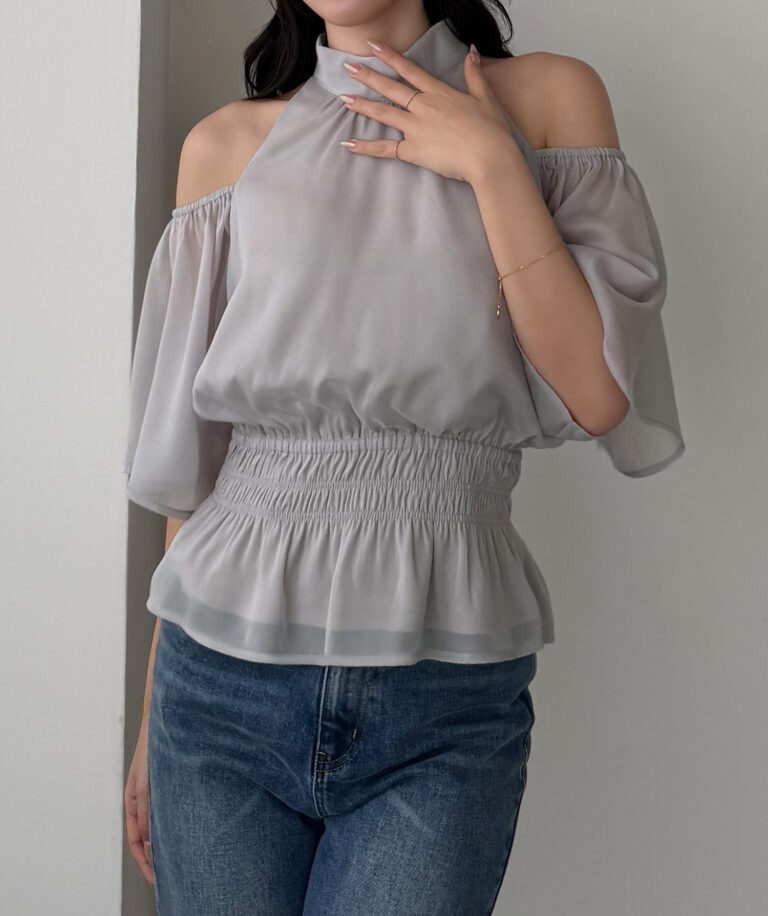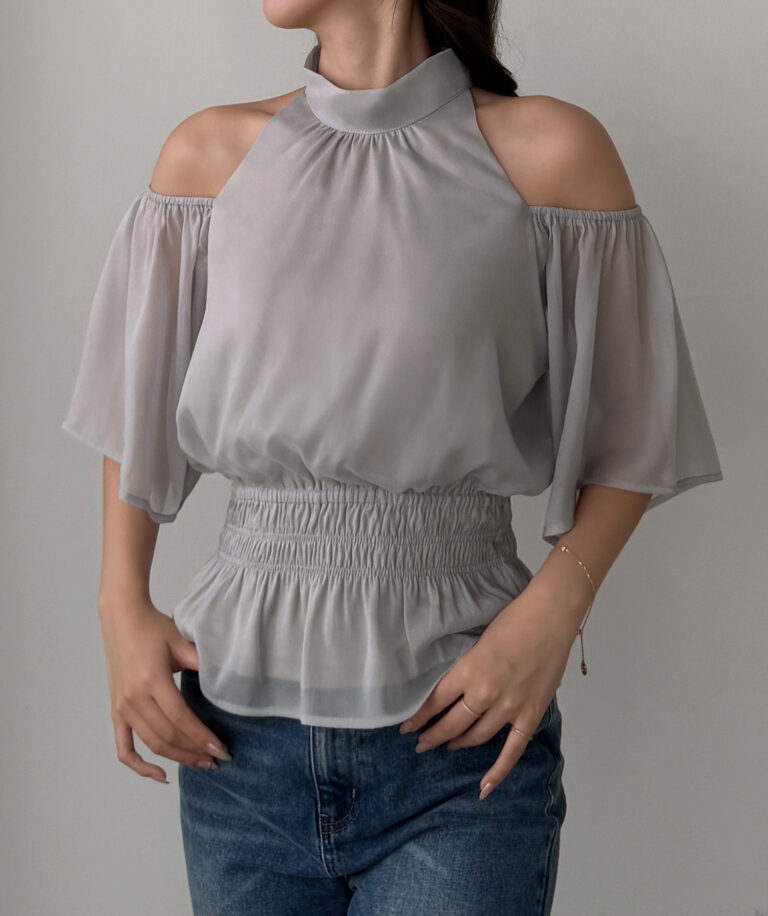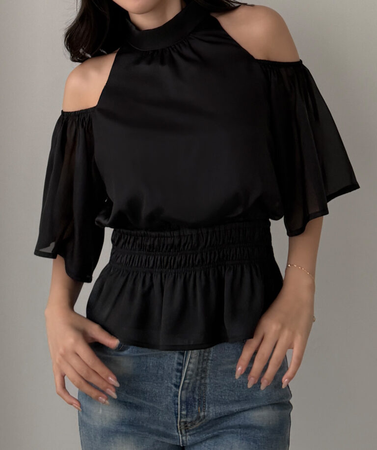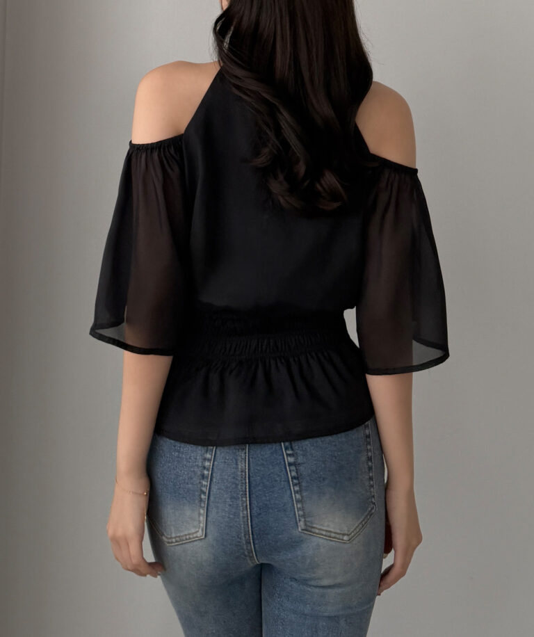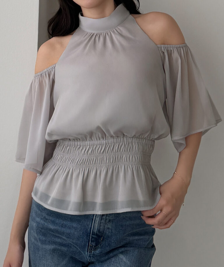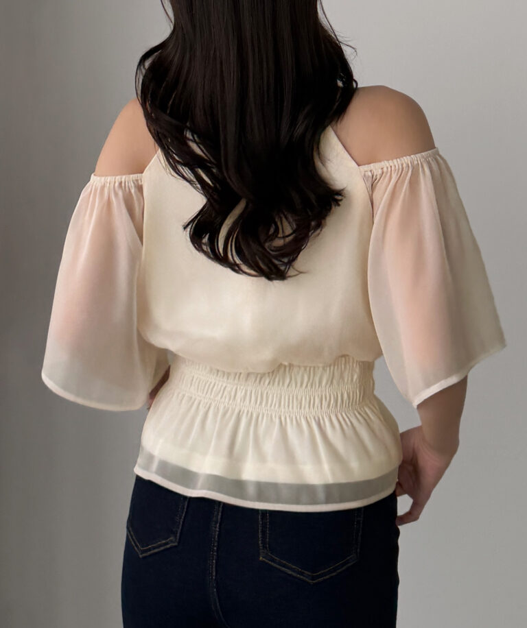 【649】オープンショルダーフレアスリーブブラウス