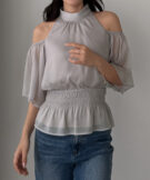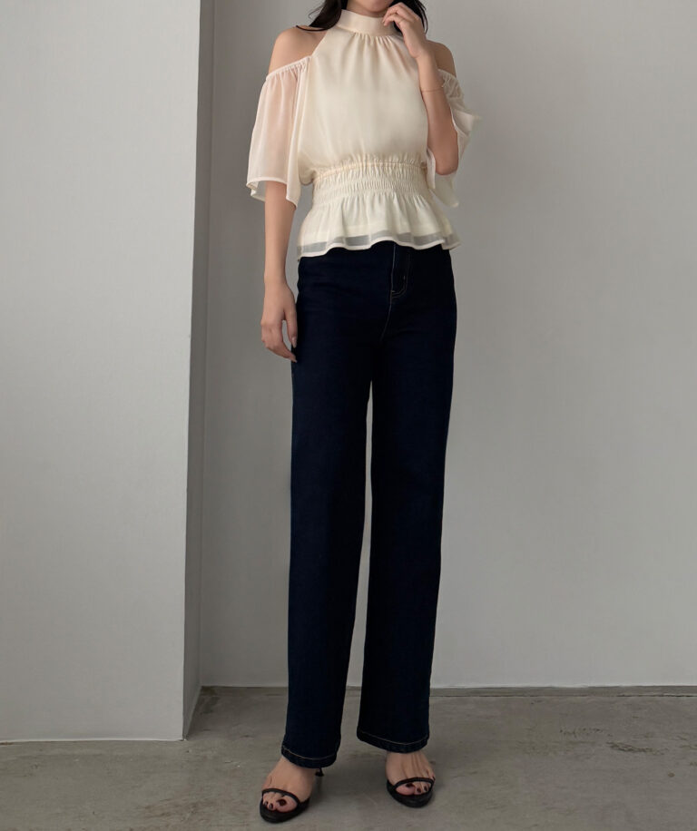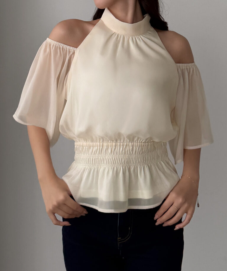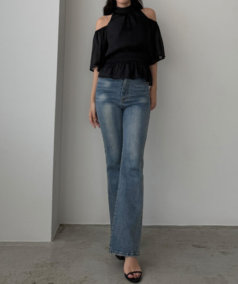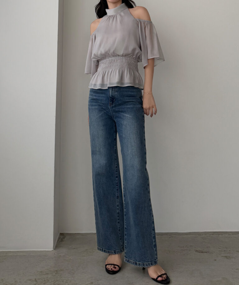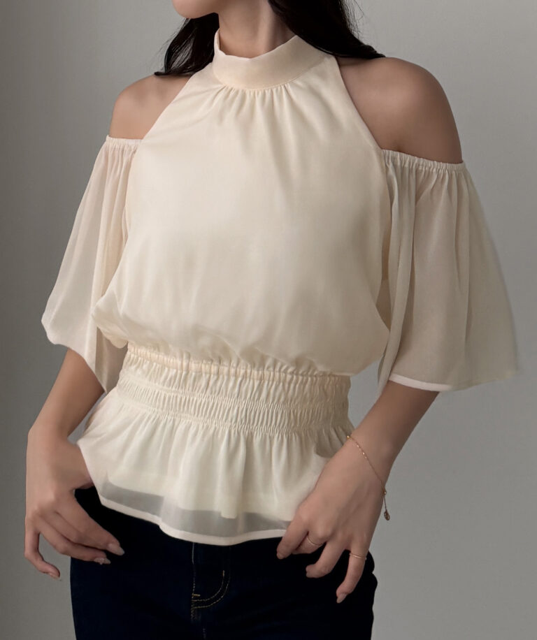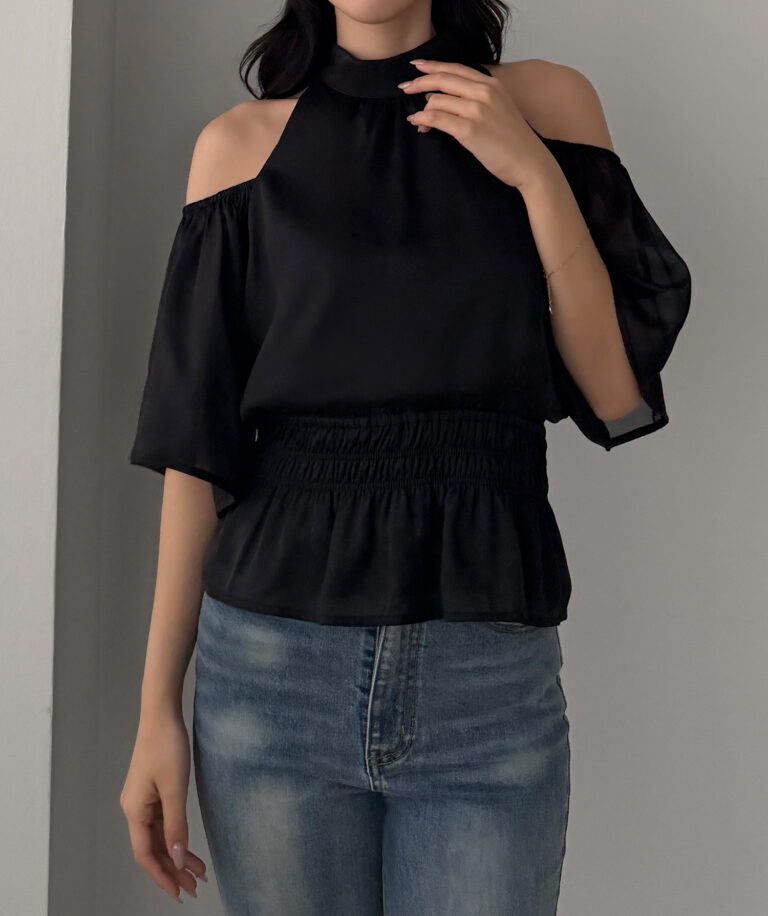 【649】オープンショルダーフレアスリーブブラウス