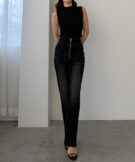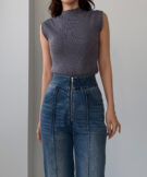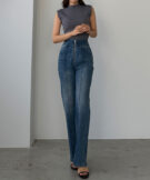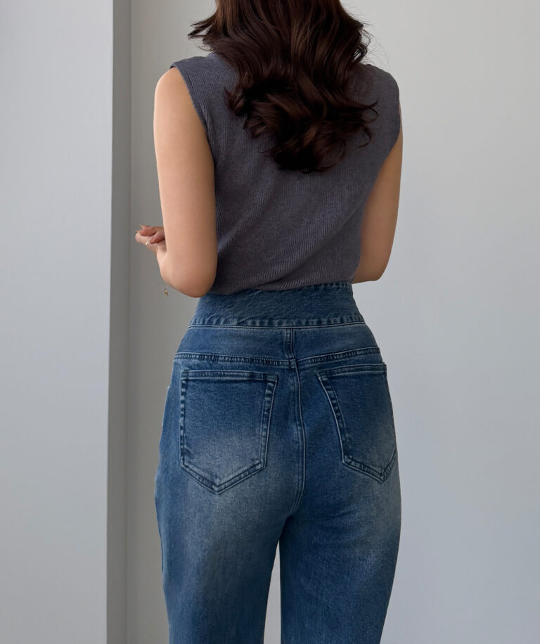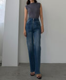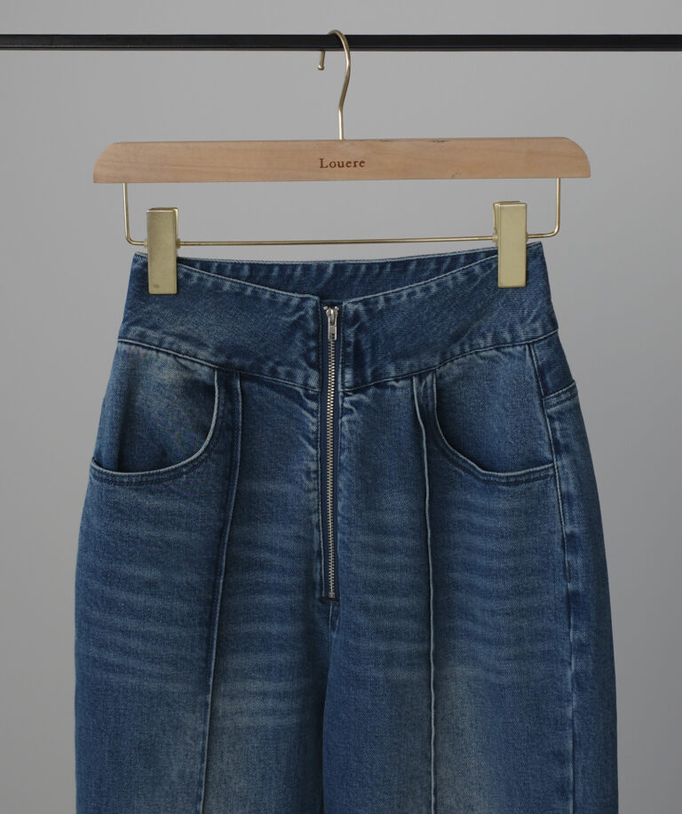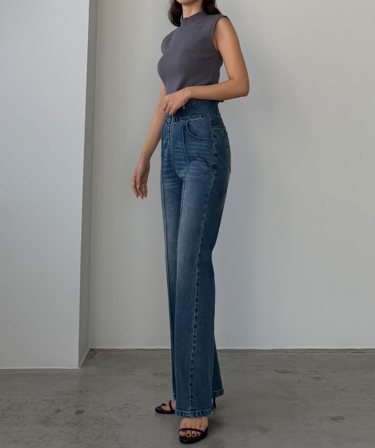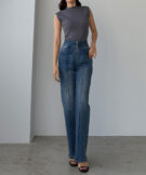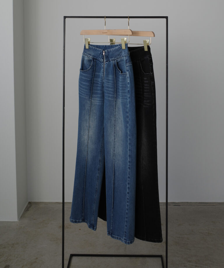 ピンタックデザインで脚のラインを綺麗に魅せる美脚デニム。