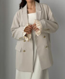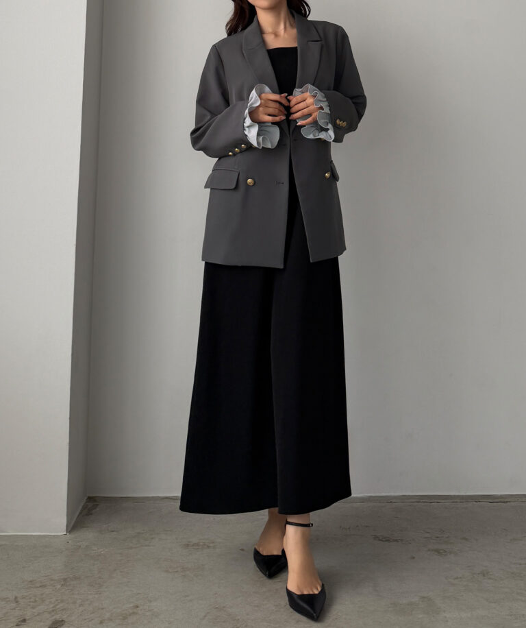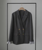ダブルブレスト×かちっとしたシルエットで大人っぽく、