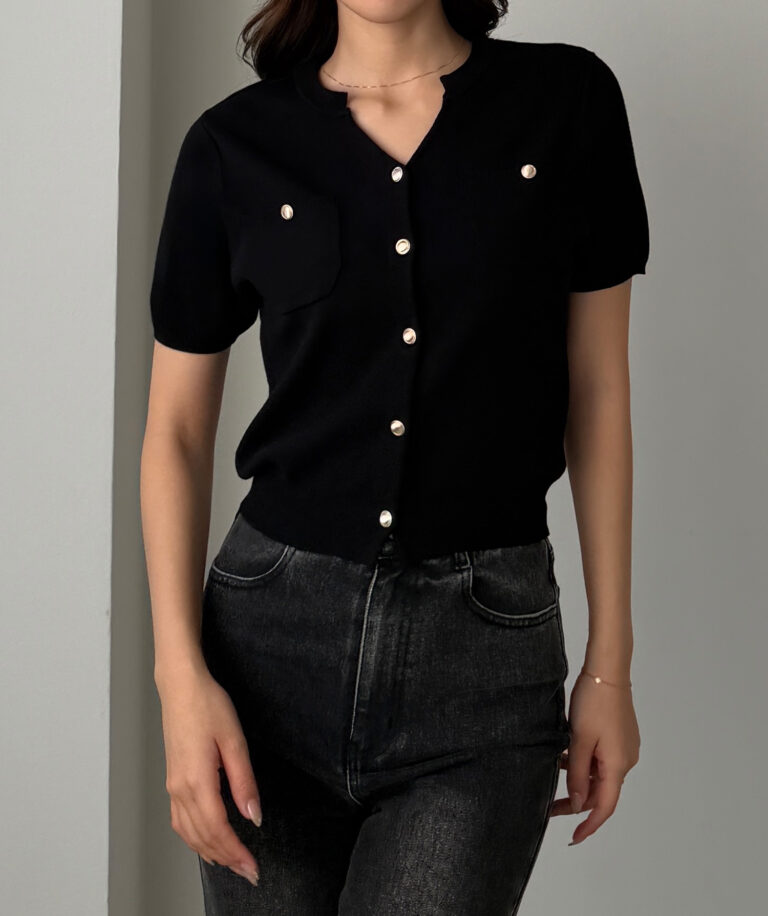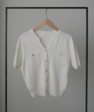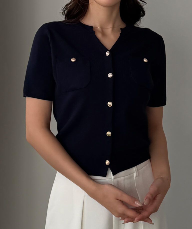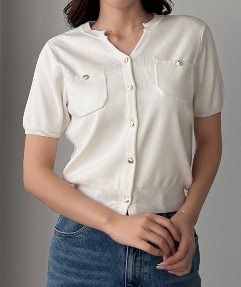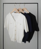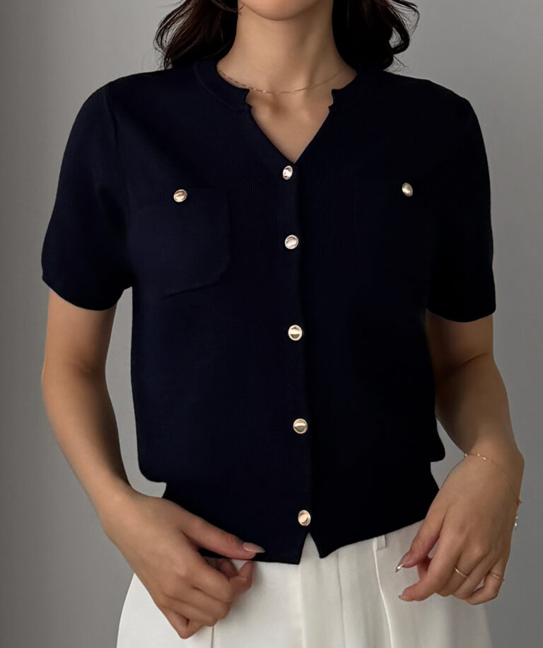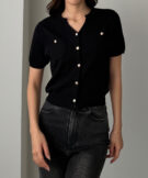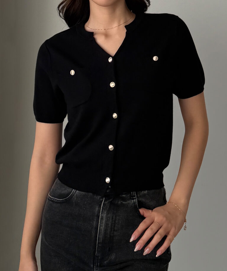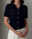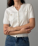 【659】キーネックゴールドボタン半袖ニットカーディガン