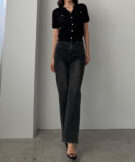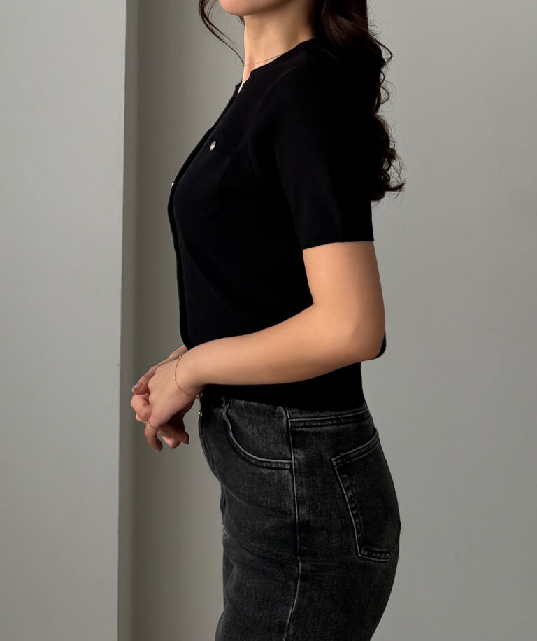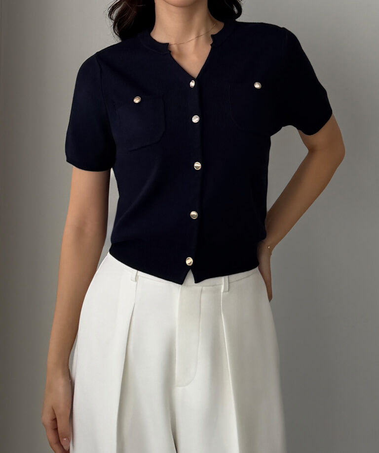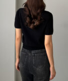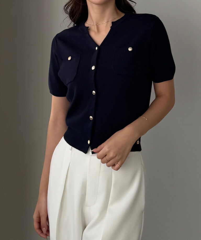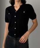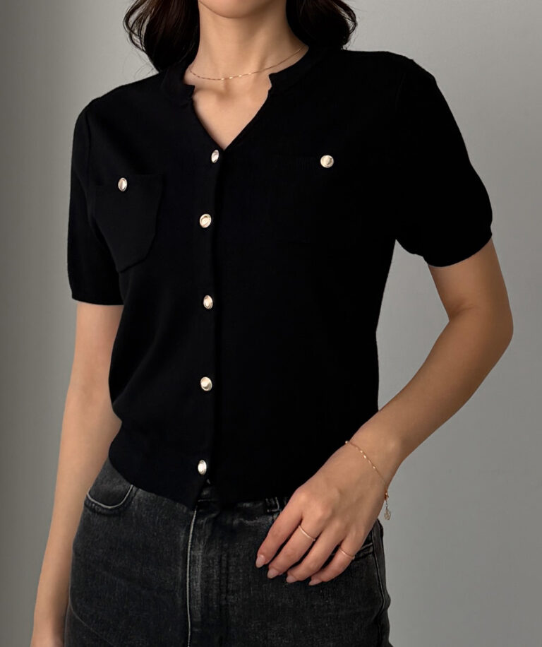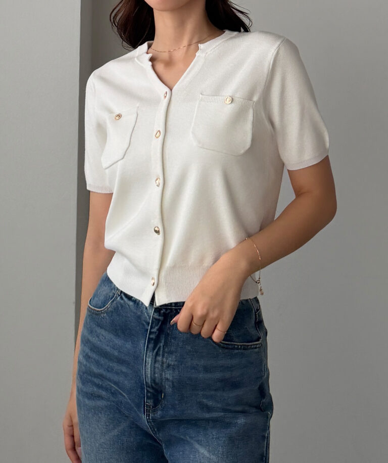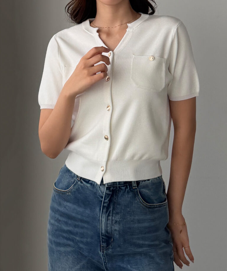 【659】キーネックゴールドボタン半袖ニットカーディガン