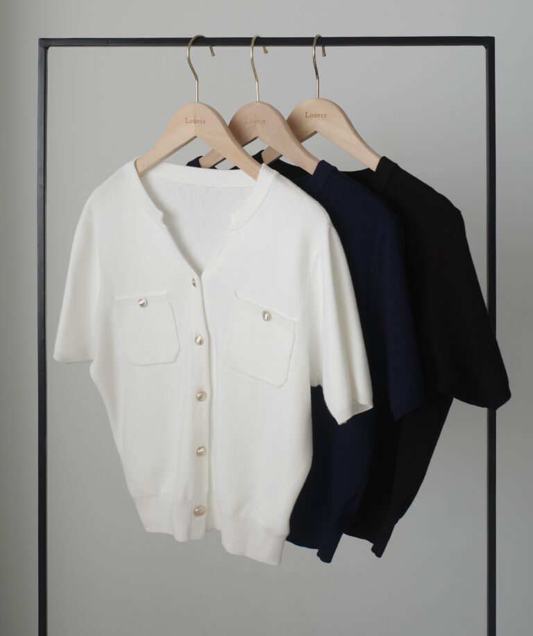 デコルテを綺麗魅せしてくれるニットカーディガン。