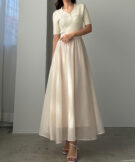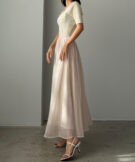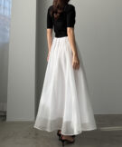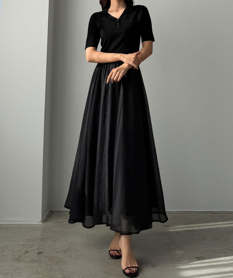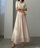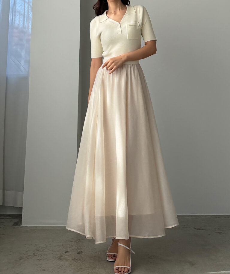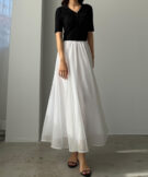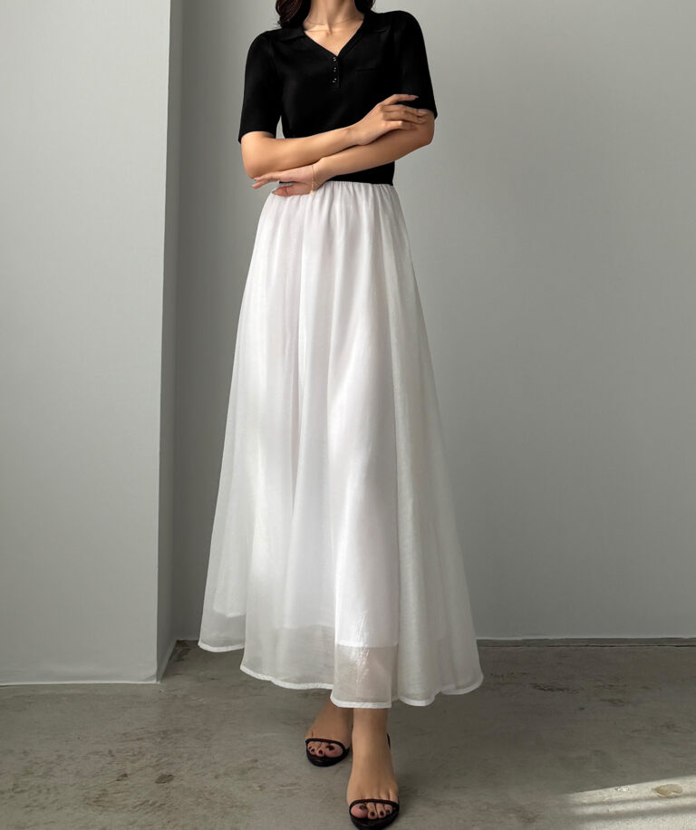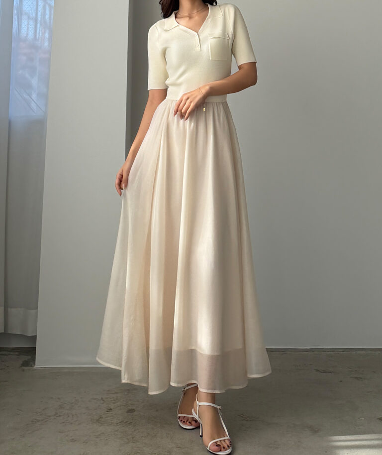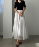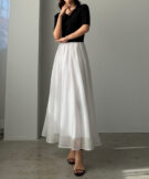 スカートはフレアシルエット×ほんのり透けるシアー素材で