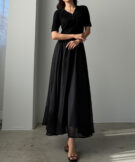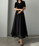 異素材ドッキングでお洒落見え抜群な大人っぽワンピ。