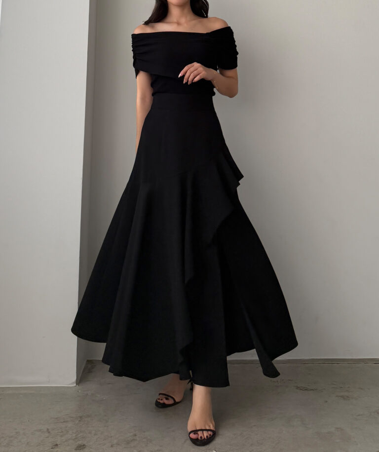 ※フレア分量が多いため到着時畳みシワが付きやすい商品となっております。予めご了承の上ご検討ください。