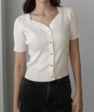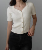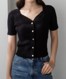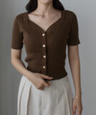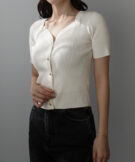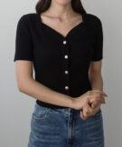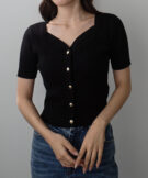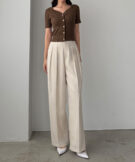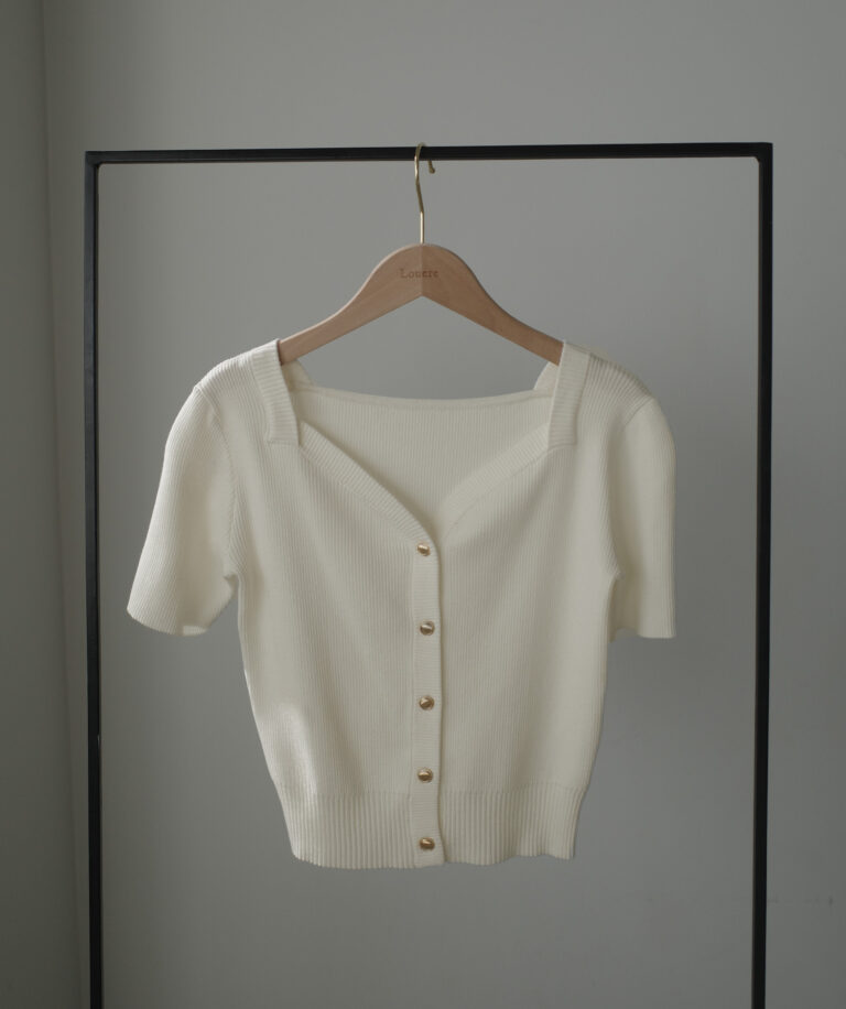 フロントにはゴールド釦を並べ、女性らしい柔らかな印象に。