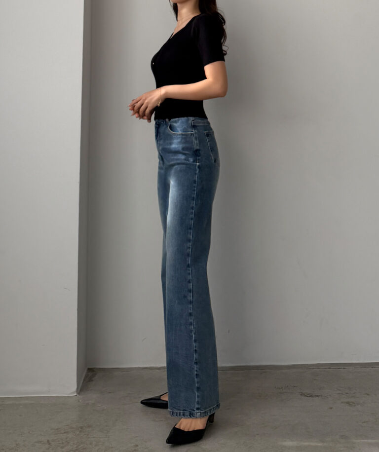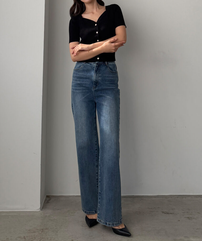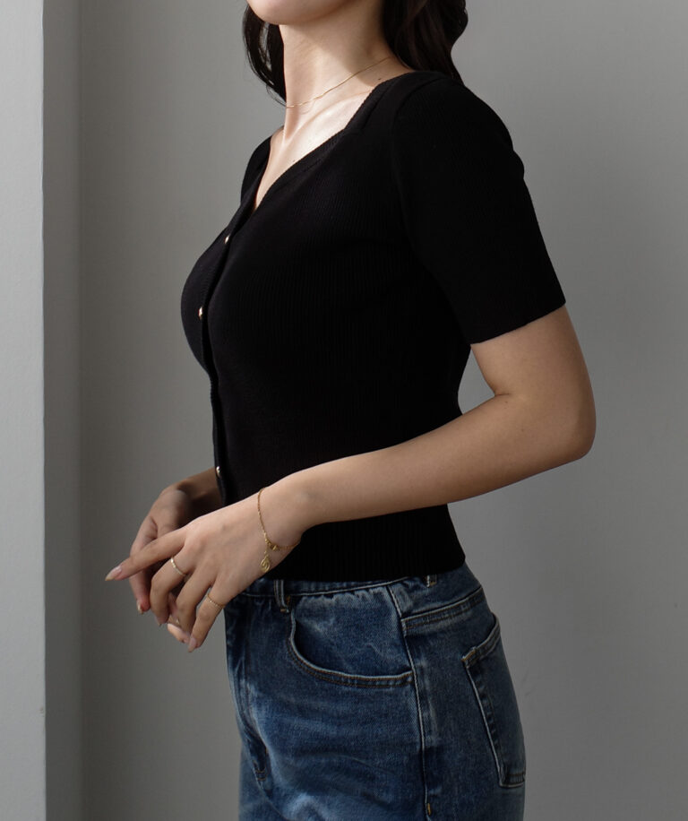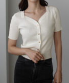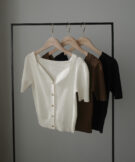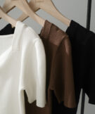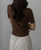 リブ編みの縦ラインが上半身スッキリと見せてくれます。