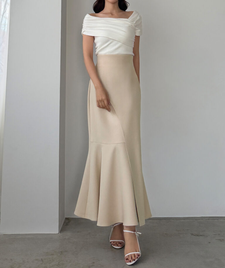 程よいフィット感のあるマーメイドシルエットで華奢な印象に♡