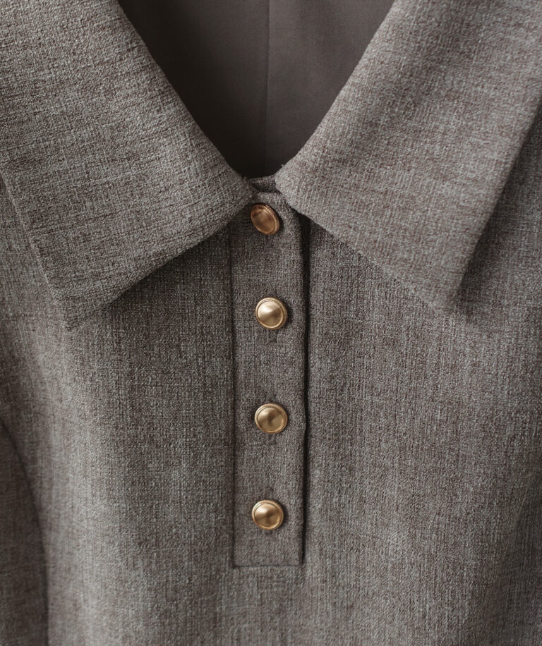 首元には金ボタンを並べ、さらに上品なアクセントをプラスしました。