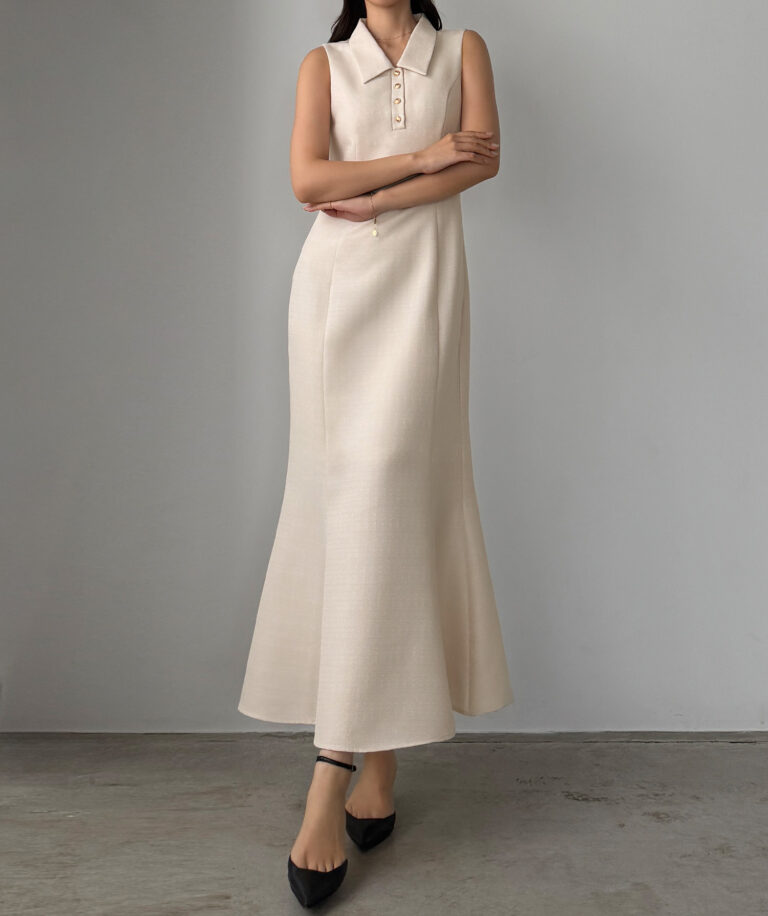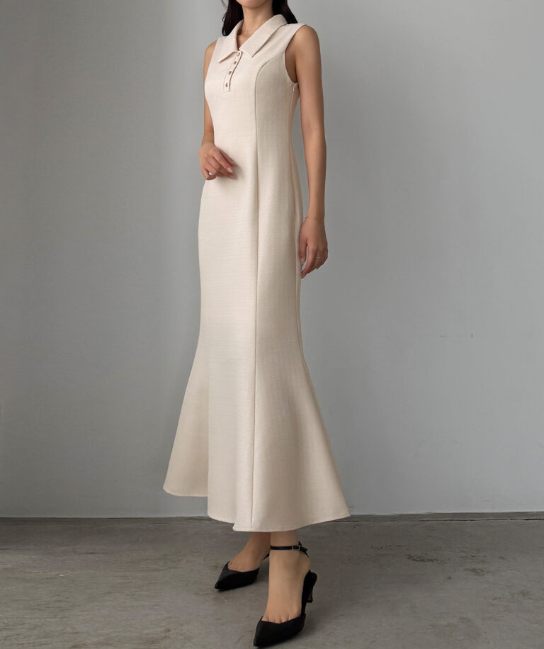全方位上品に魅せるノースリーブマーメイドワンピ。