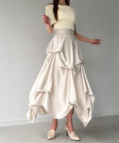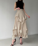 【715】ハイウエストサテンタックデザインスカート