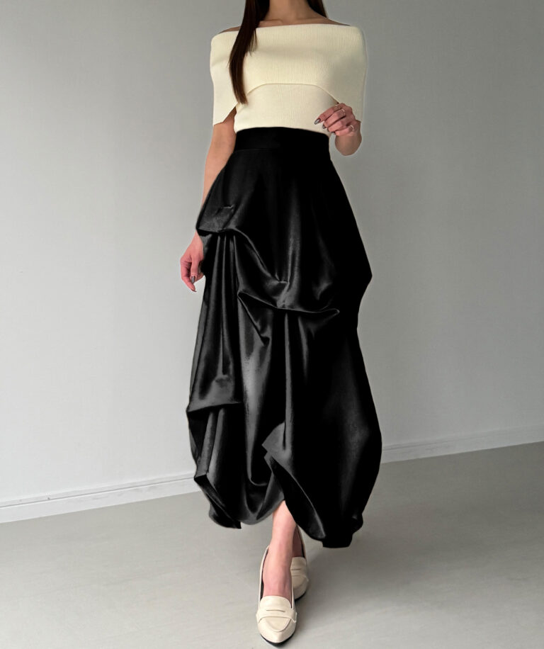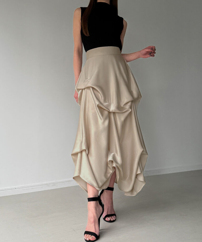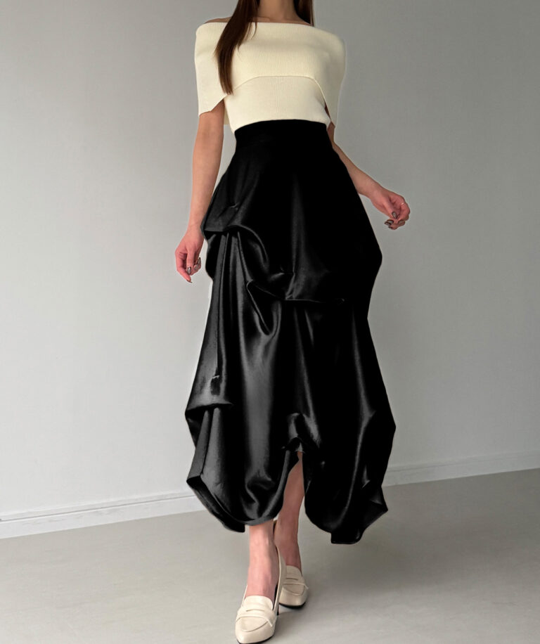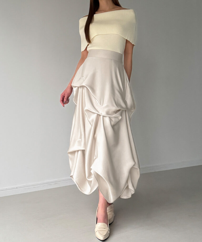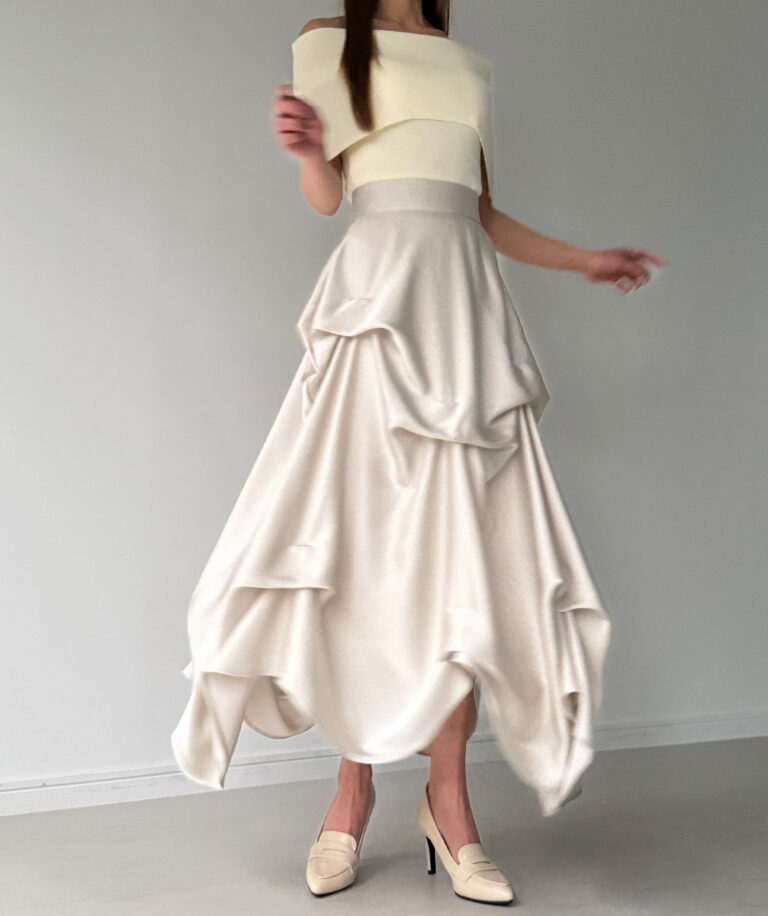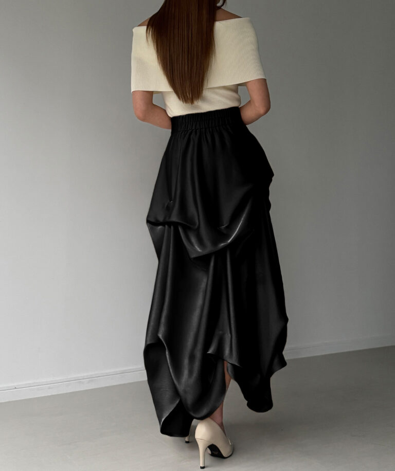 ドラマティックな存在感に思わず見惚れるサテンスカート。