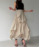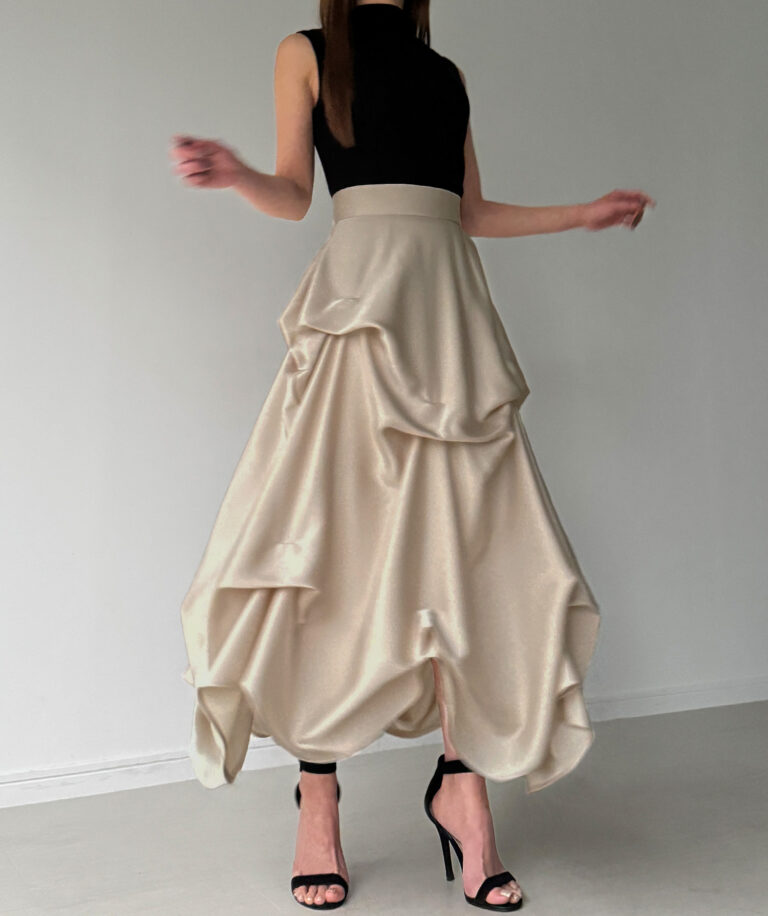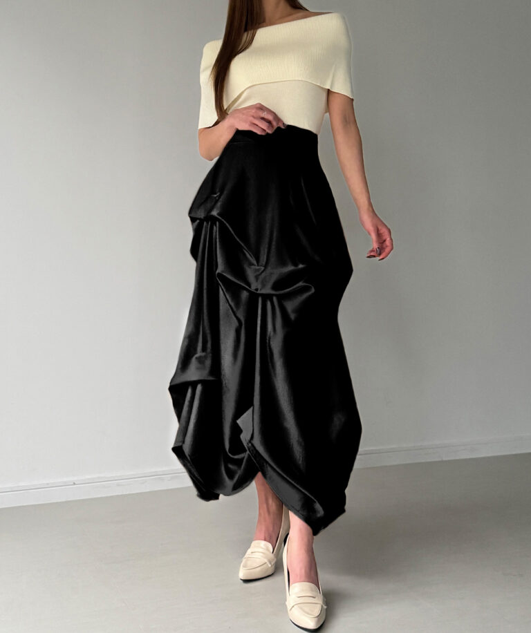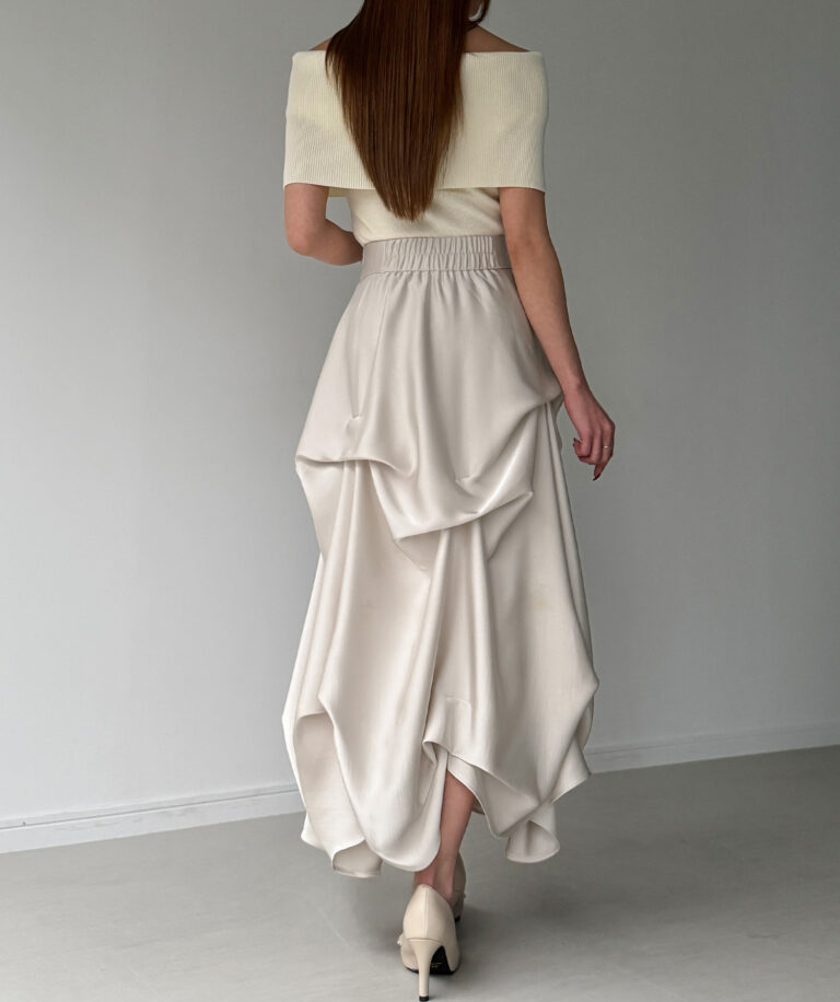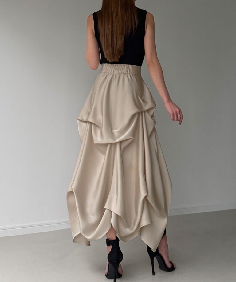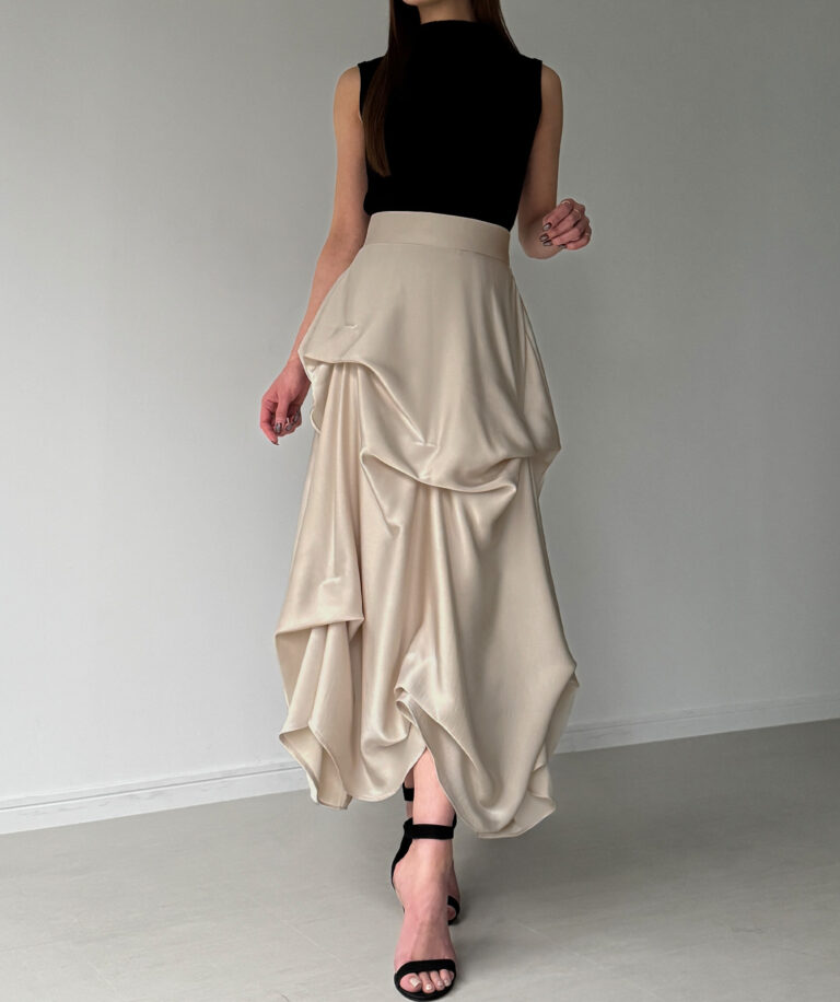 ドラマティックな存在感に思わず見惚れるサテンスカート。