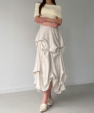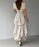 上品な艶感のサテン生地をたっぷり使用した特別感溢れる贅沢スカート。